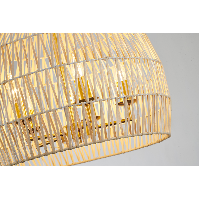 A NATURAL VINE WEAVED BASKET LIGHT WITH A BRASS FRAME