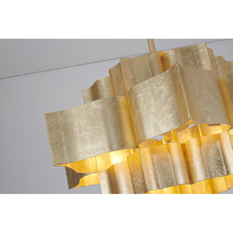 A GOLD LEAF THREE TIER METAL FRAME LIGHT FIXTURE