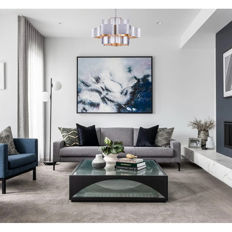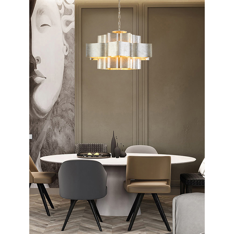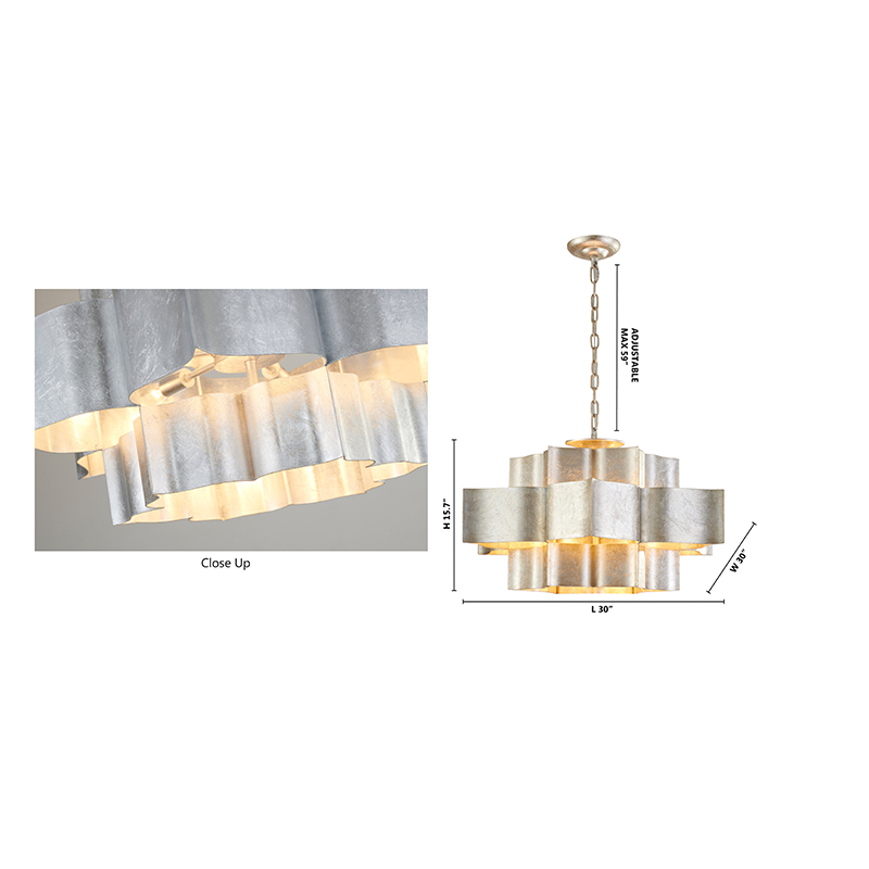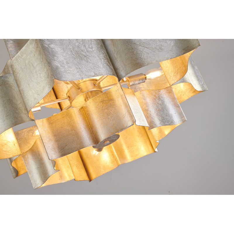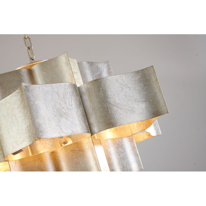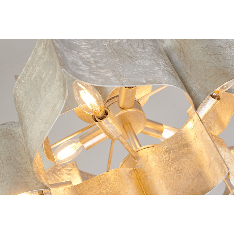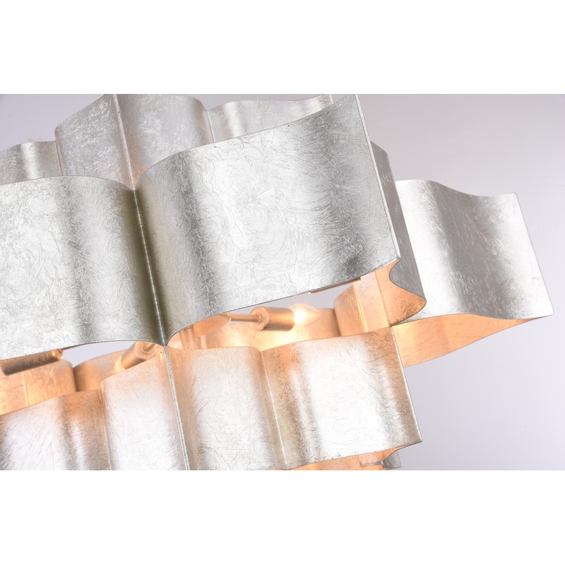 AN ANTIQUE SILVER LEAF METAL THREE TIER LIGHT FIXTURE