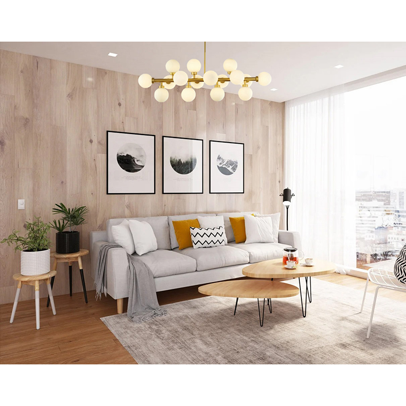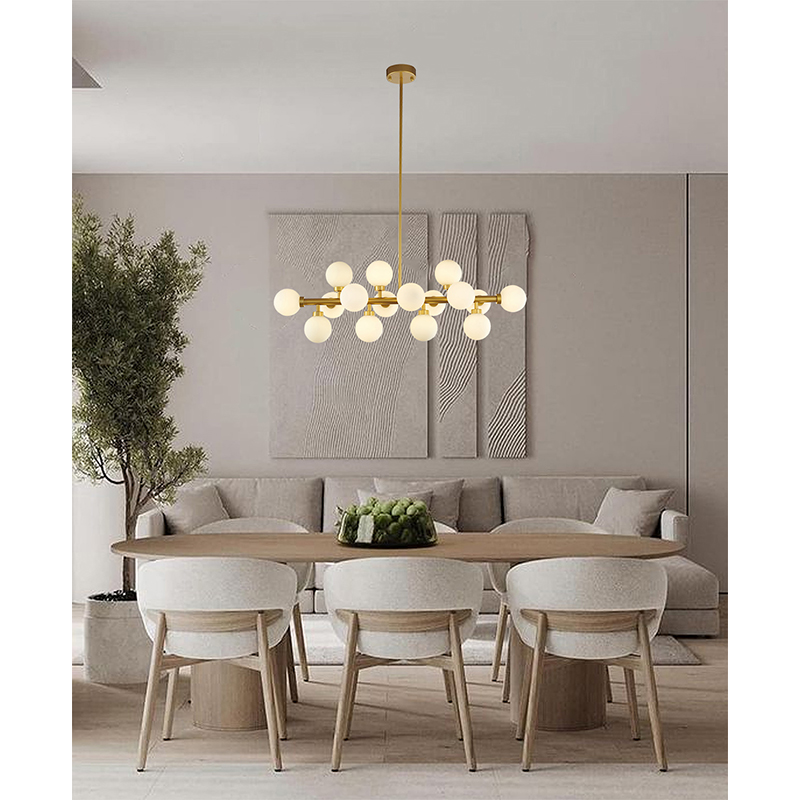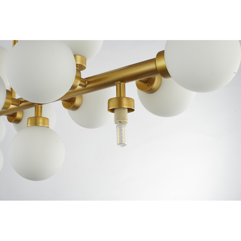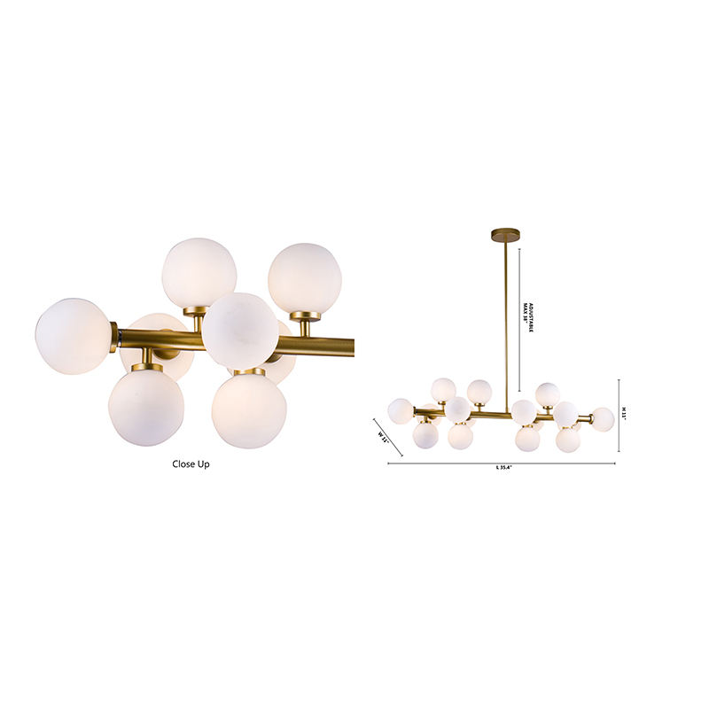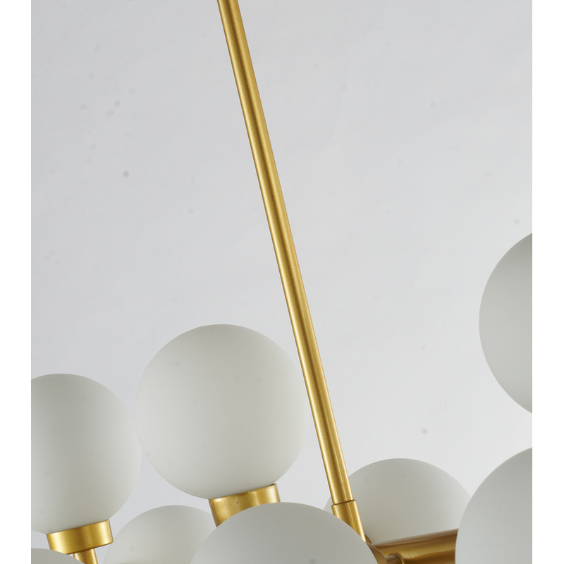 A GOLD METAL FRAME CHANDELIER WITH MILK WHITE GLASS SHADES