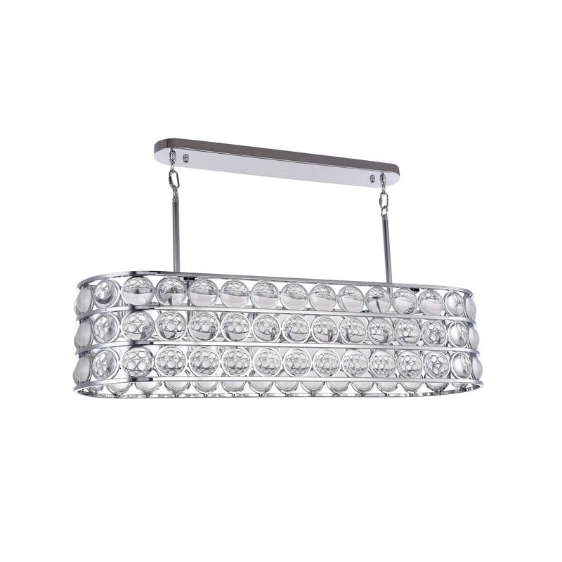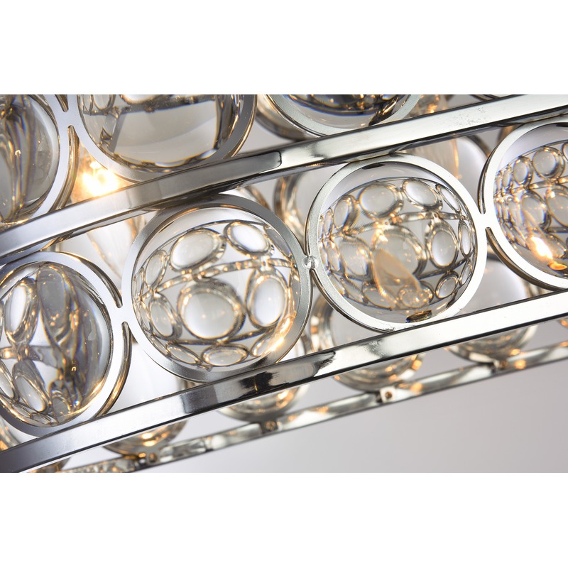 A CHROME OVAL FRAME CHANDELIER WITH CLEAR MAGNIFYING GLASS