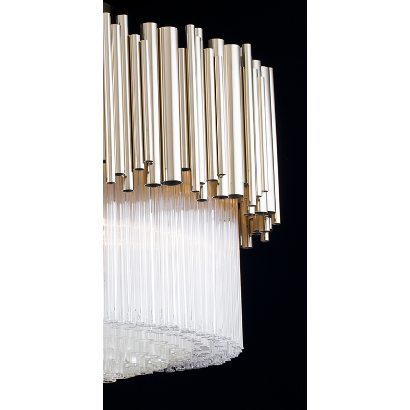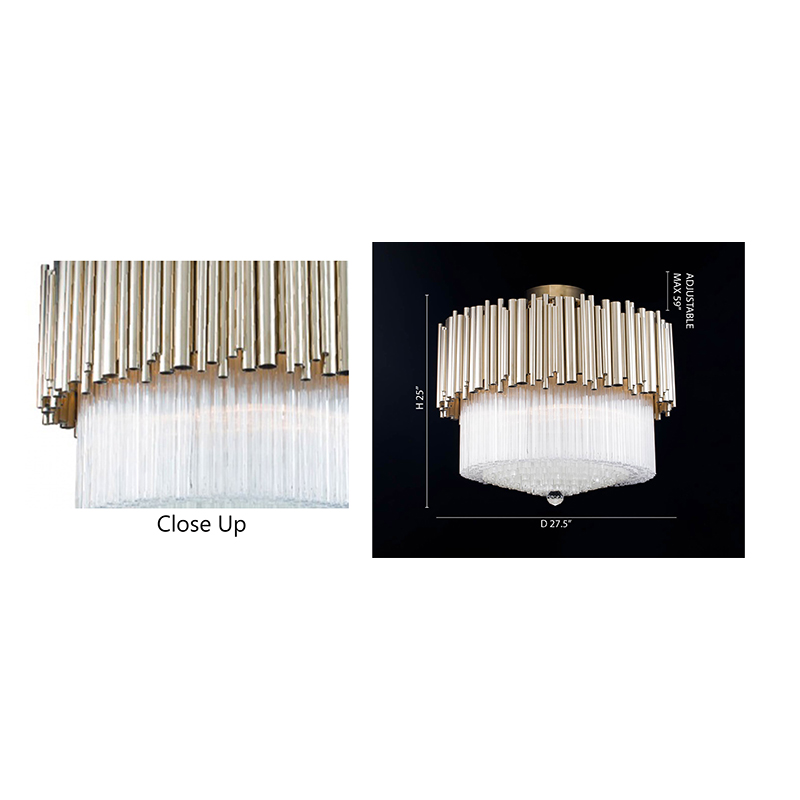 GOLD STAINLESS STEEL ROD LIGHT FIXTURE WITH ADJUSTABLE CORDS AND CLEAR GLASS ROD DROPS
