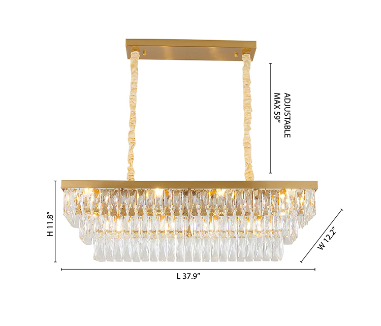 A RECTANGULAR GOLD METAL FRAME CHANDELIER WITH CLEAR HANGING CRYSTALS