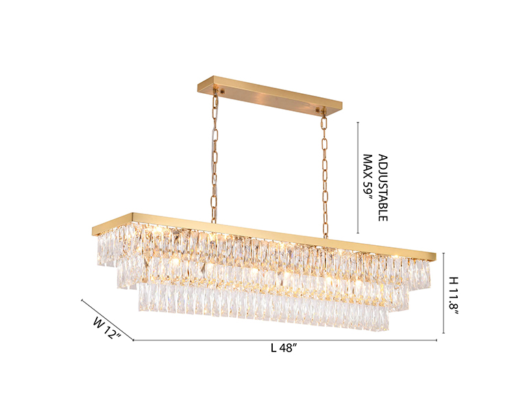 A RECTANGULAR GOLD METAL FRAME CHANDELIER WITH CLEAR HANGING CRYSTALS