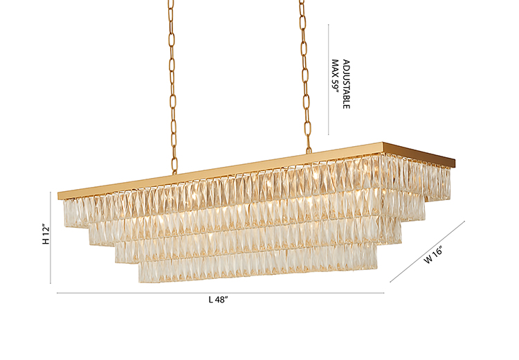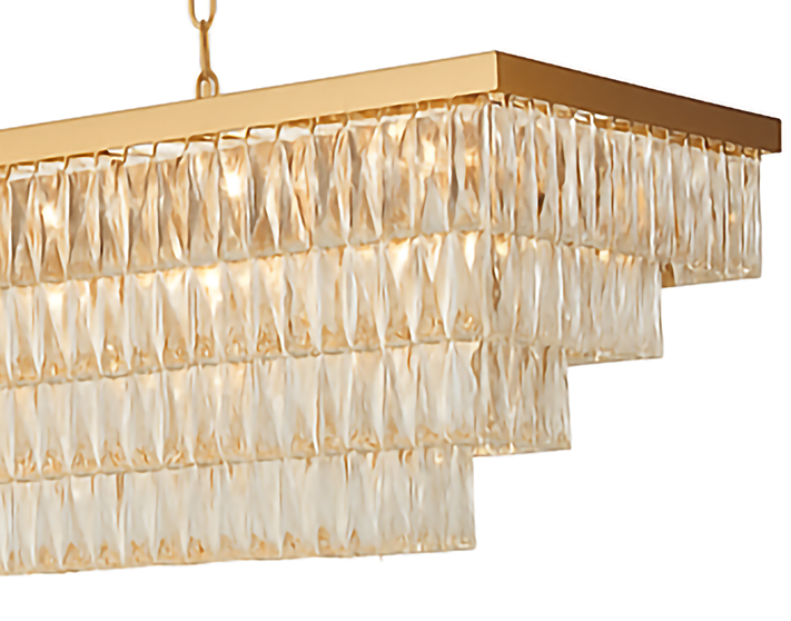 GOLD RECTANGULAR CHANDELIER WITH CLEAR CRYSTALS
