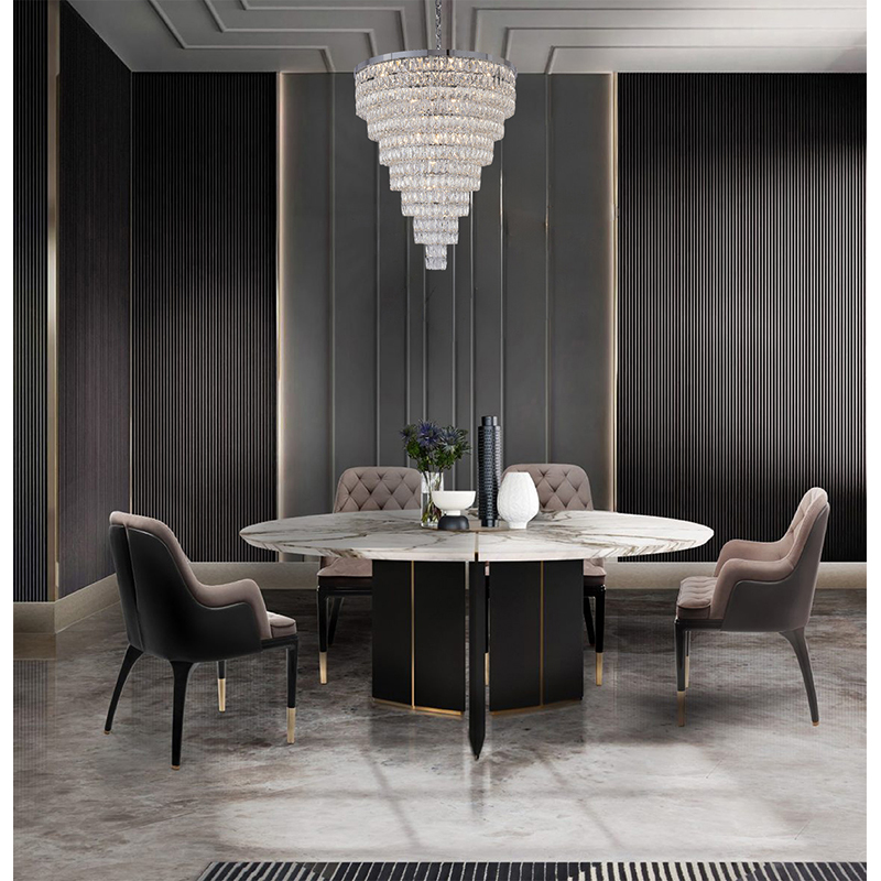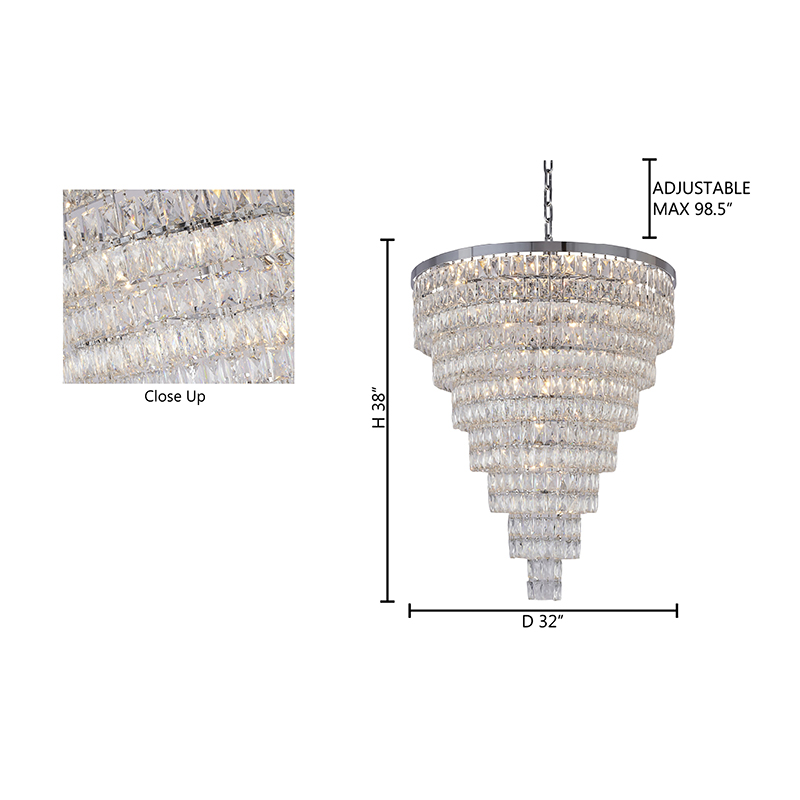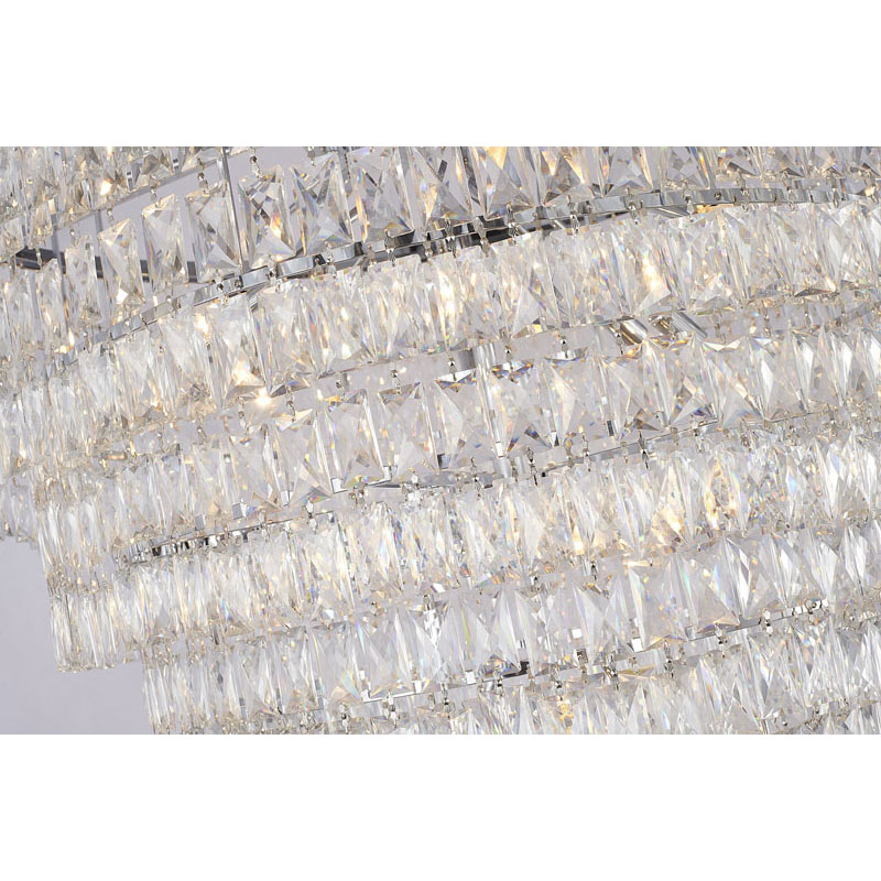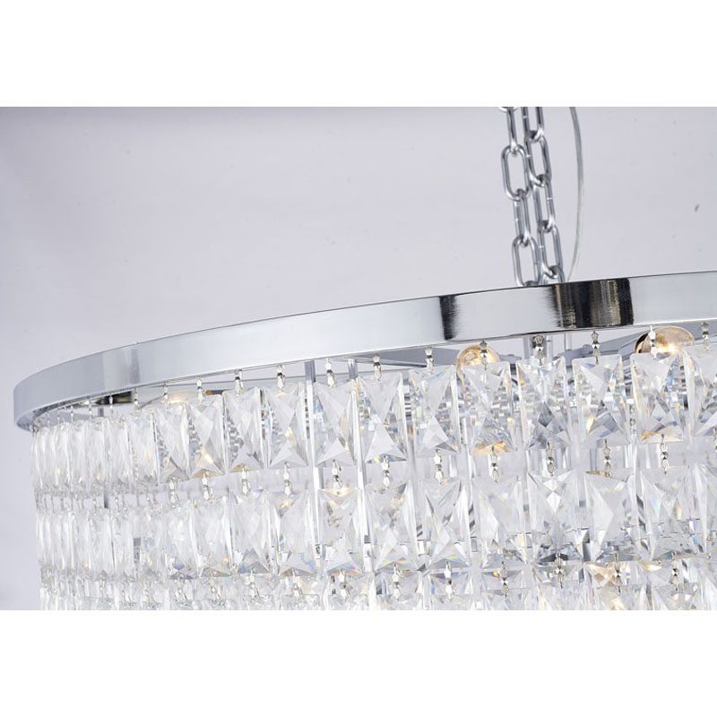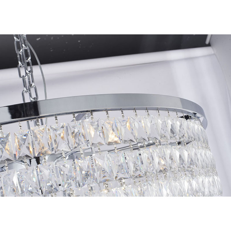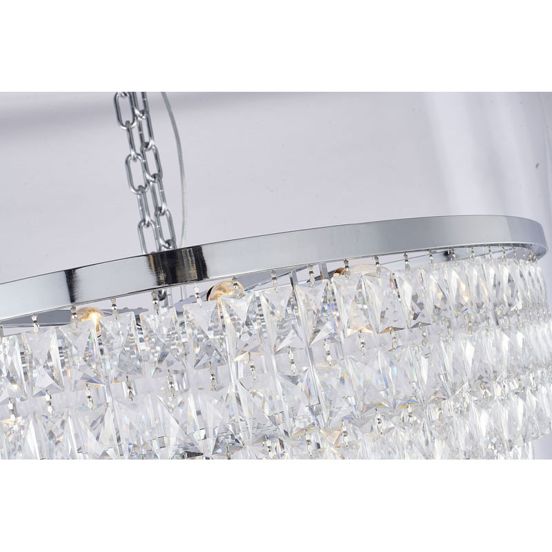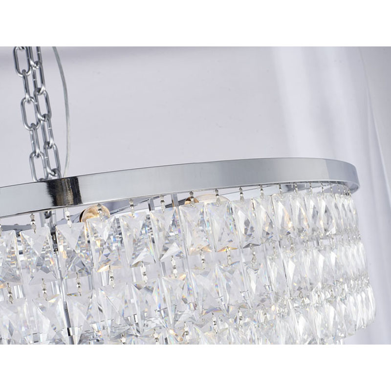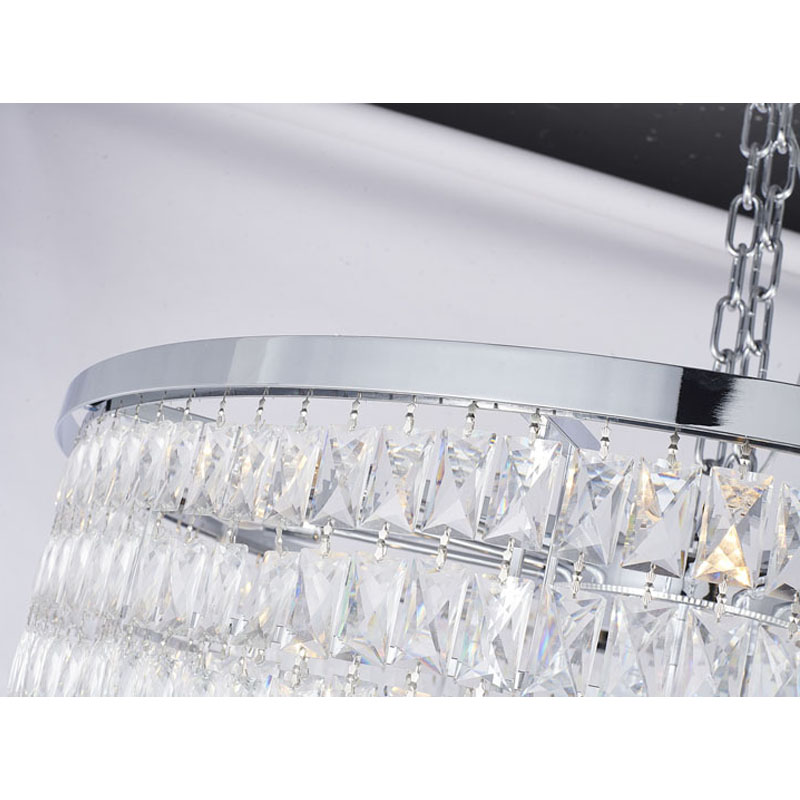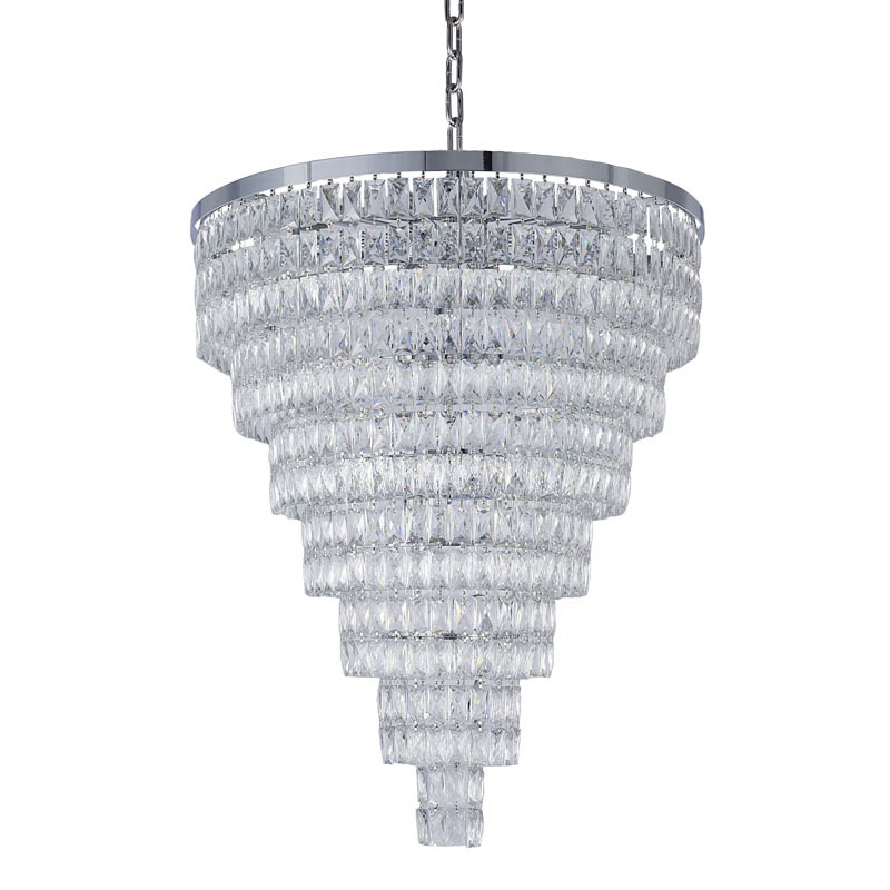 A CHROME SEVEN TIER CHANDELIER WITH CLEAR HANGING CRYSTALS