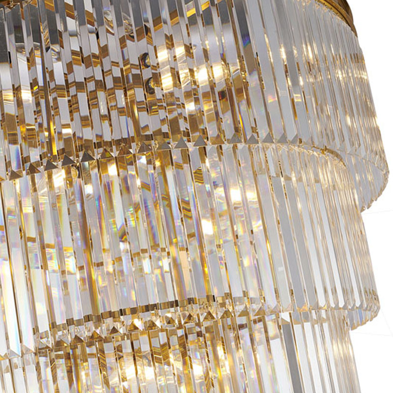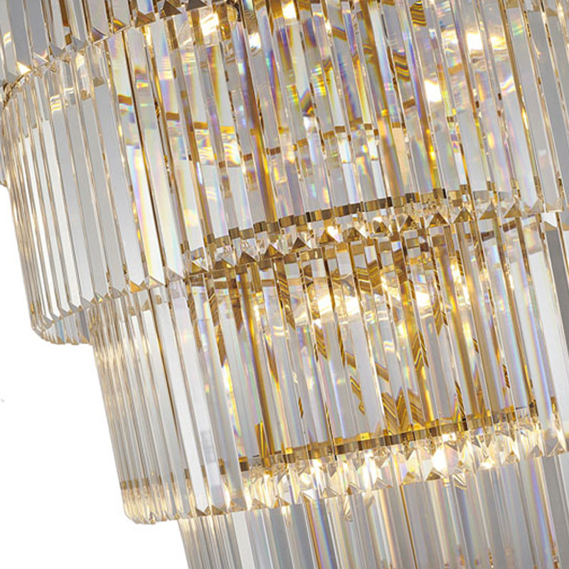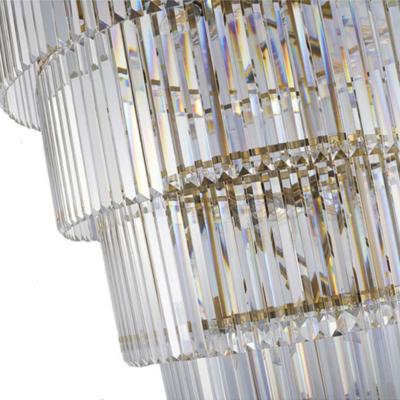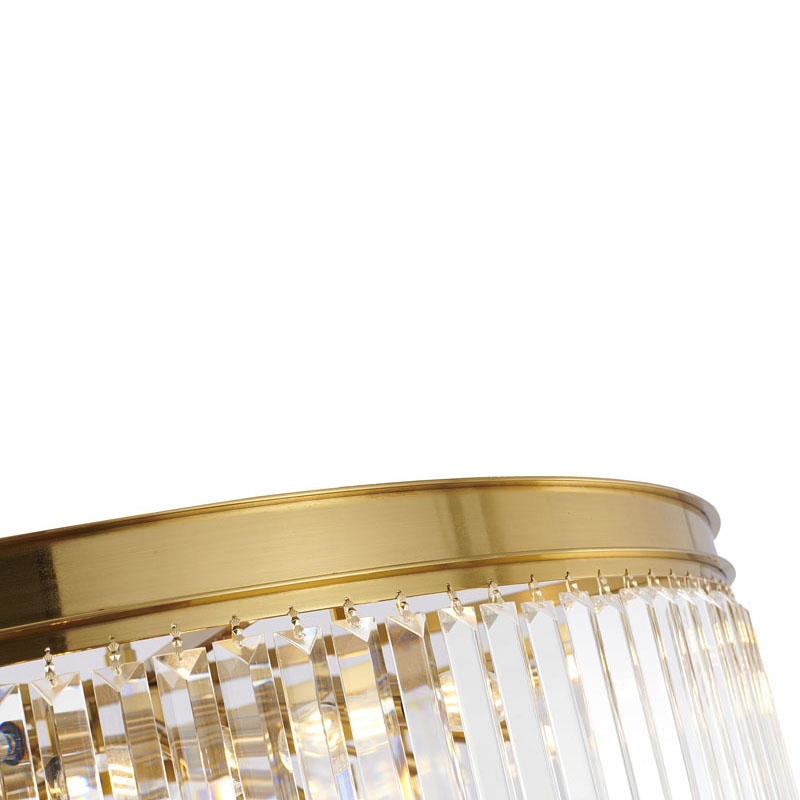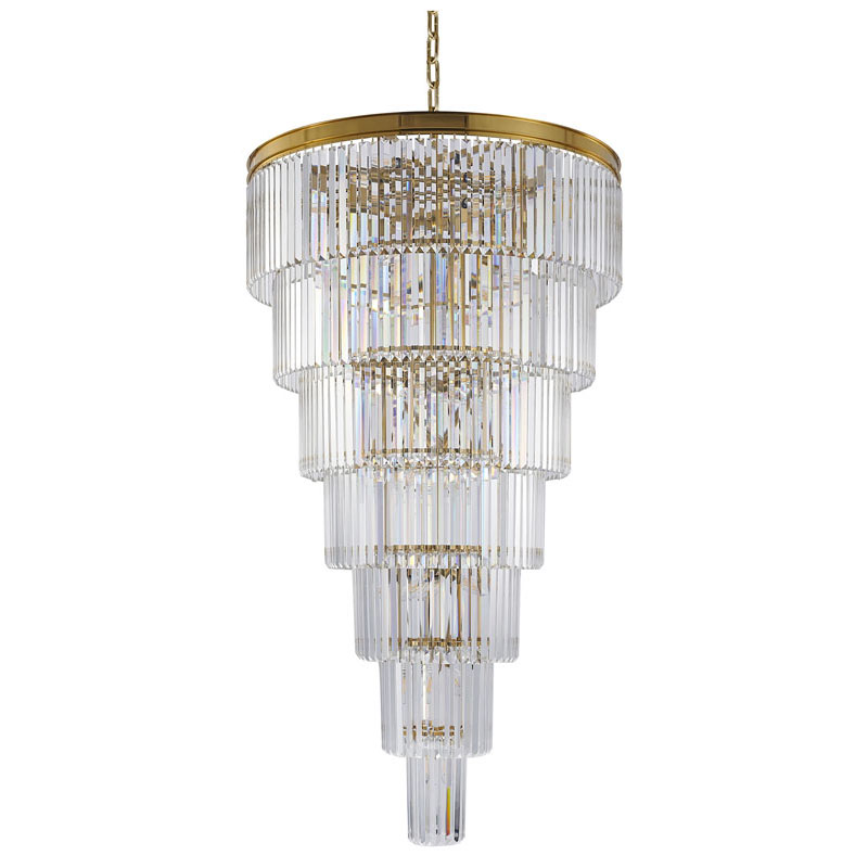 A SEVEN TIER BRASS FRAME CHANDELIER WITH CLEAR HANGING CRYSTALS