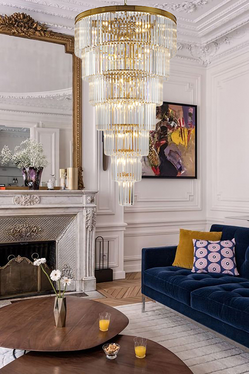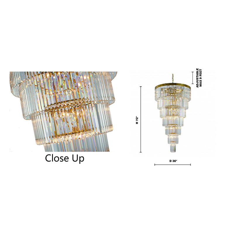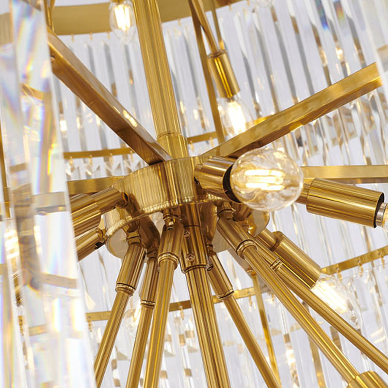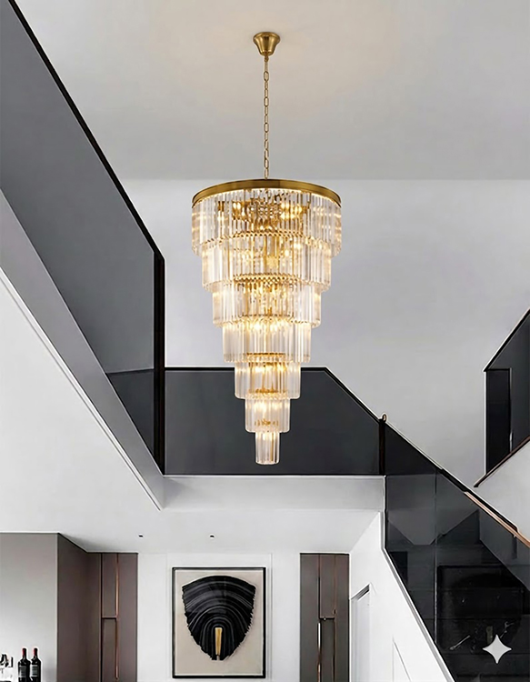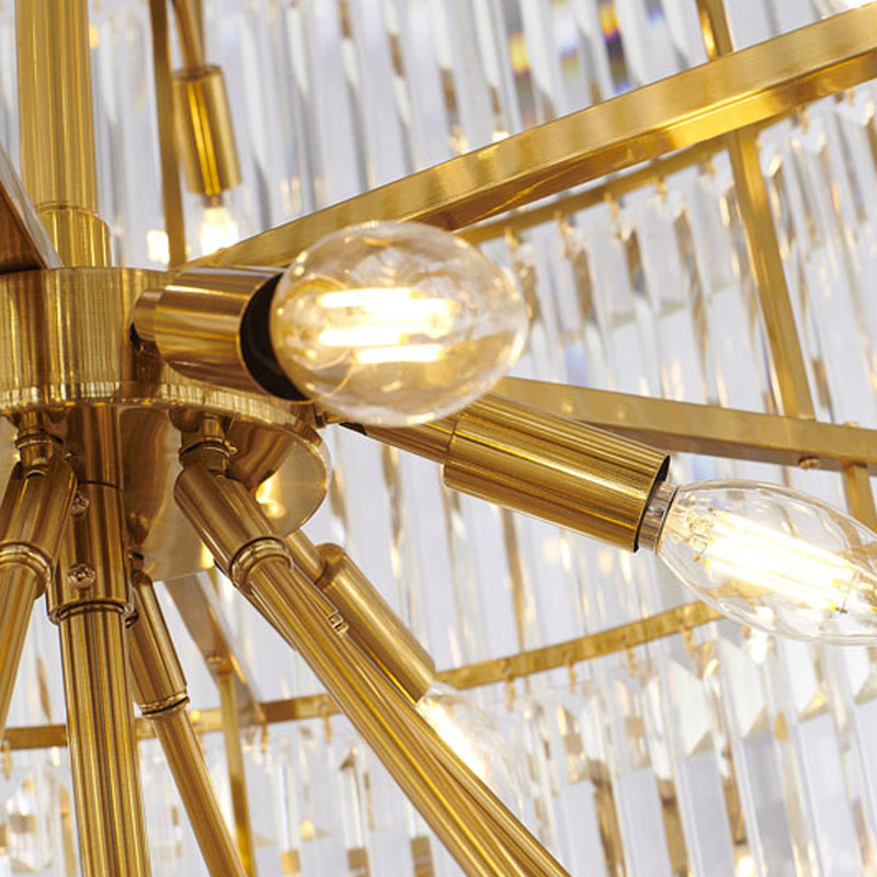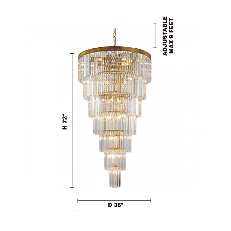 A SEVEN TIER BRASS FRAME CHANDELIER WITH CLEAR HANGING CRYSTALS