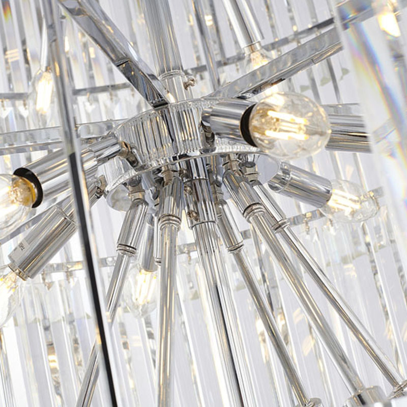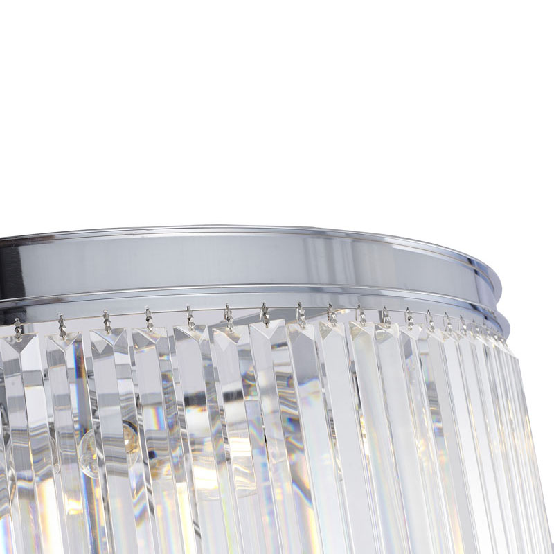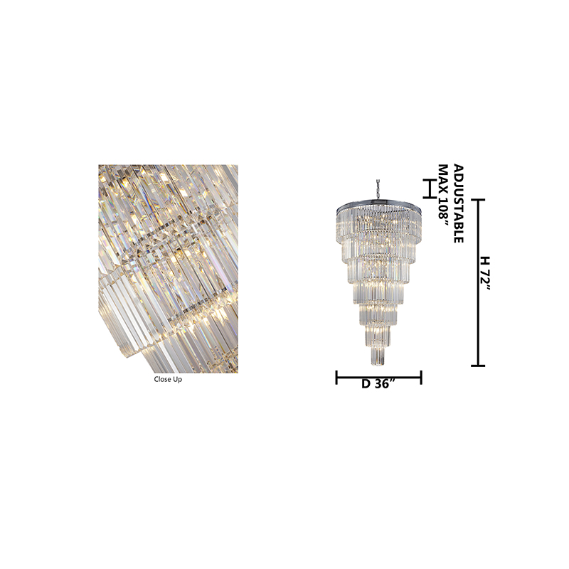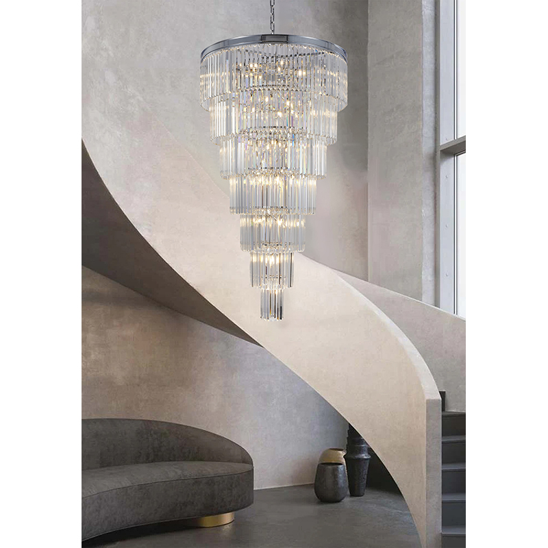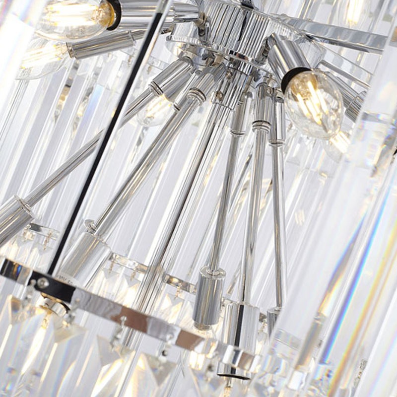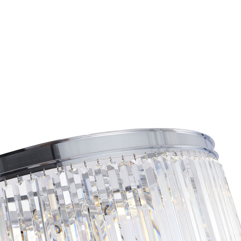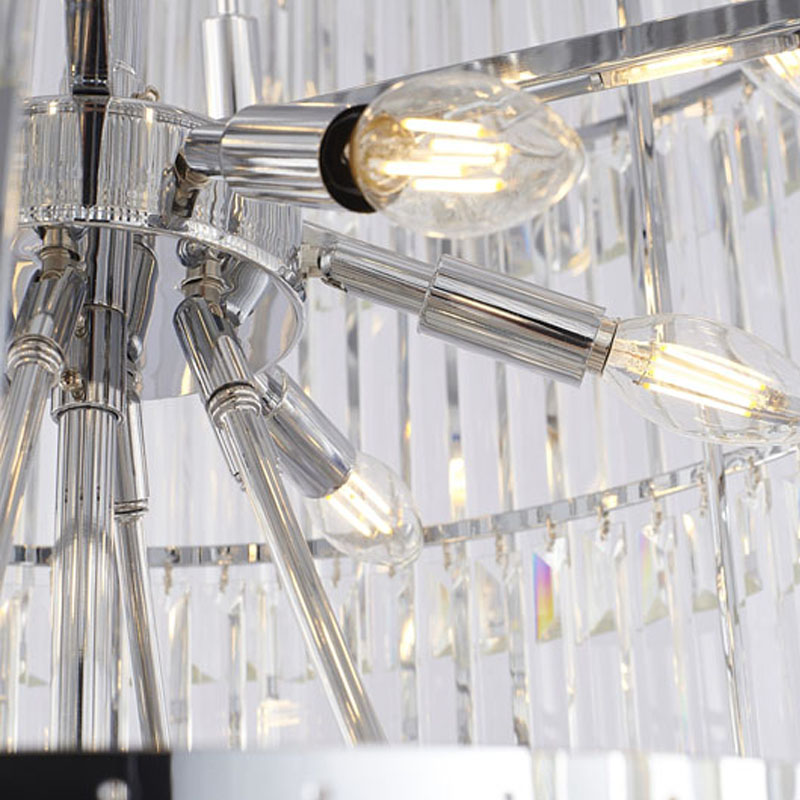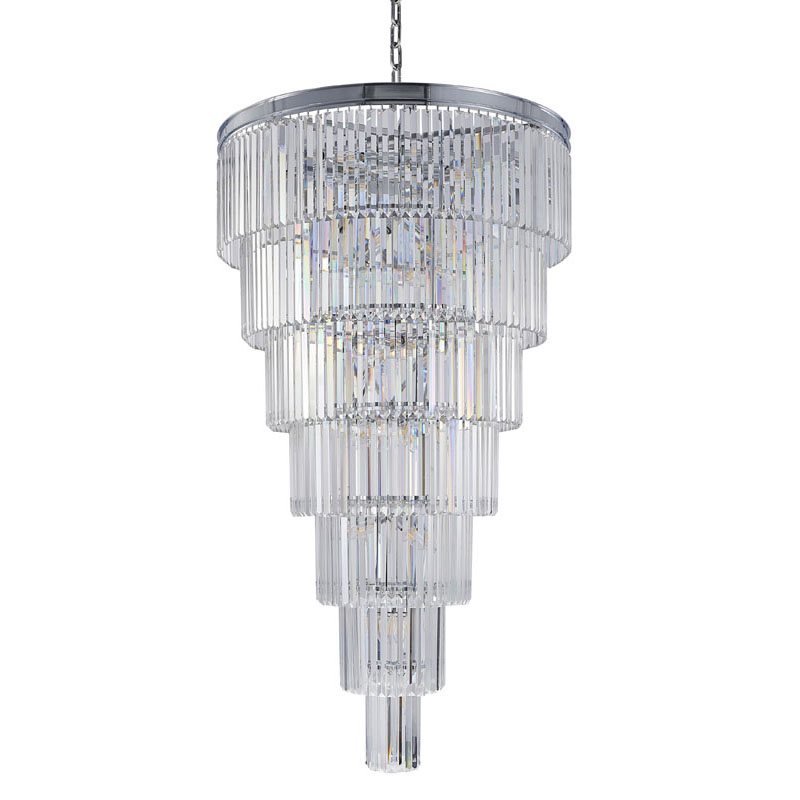A SEVEN TIER CHROME FRAME CHANDELIER WITH CLEAR HANGING CRYSTALS