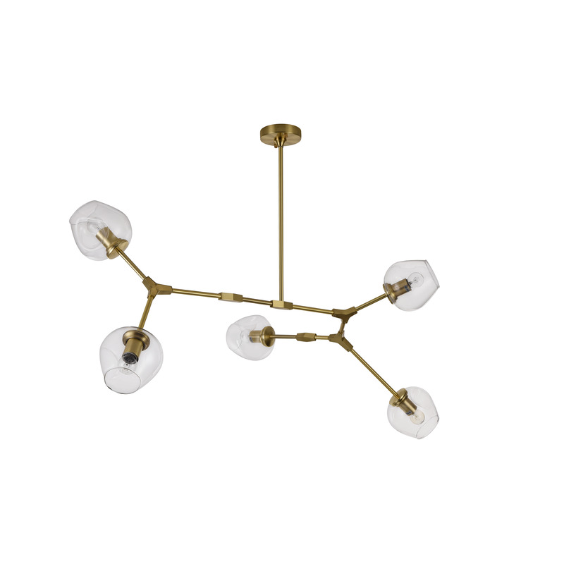 A BRASS FRAME CEILING FIXTURE WITH INDENTED CLEAR COLOR GLASS SHADES