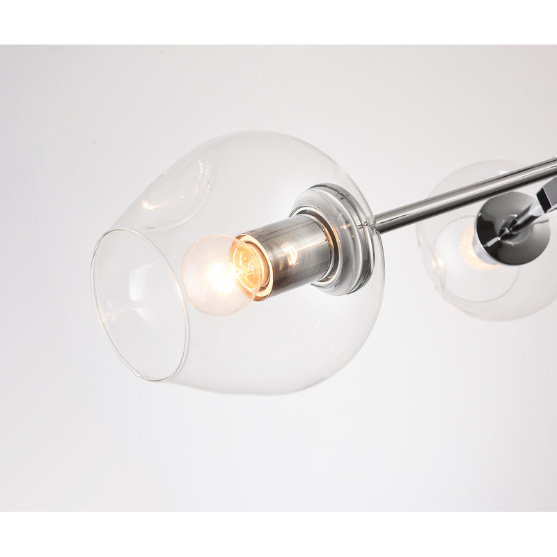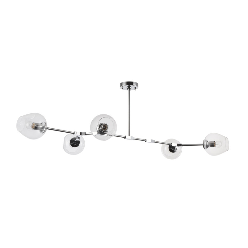 A CHROME FRAME CEILING FIXTURE WITH INDENTED CLEAR COLOR GLASS SHADES