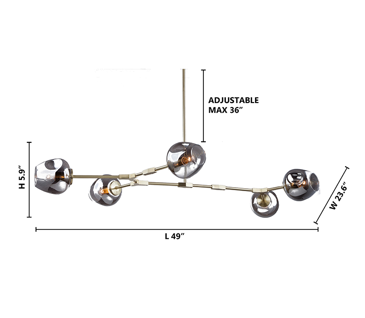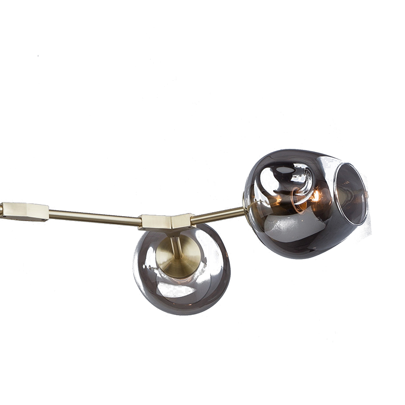 A BRASS FRAME CEILING FIXTURE WITH INDENTED SMOKE COLOR GLASS SHADES