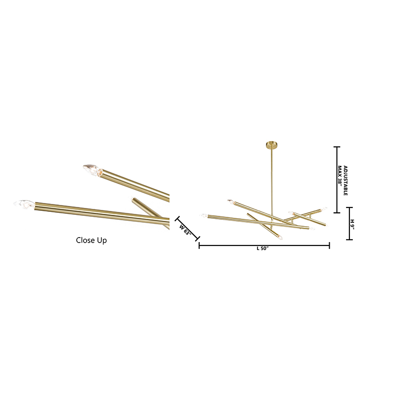 BRASS ROD MATCH STICK LIGHT FIXTURE