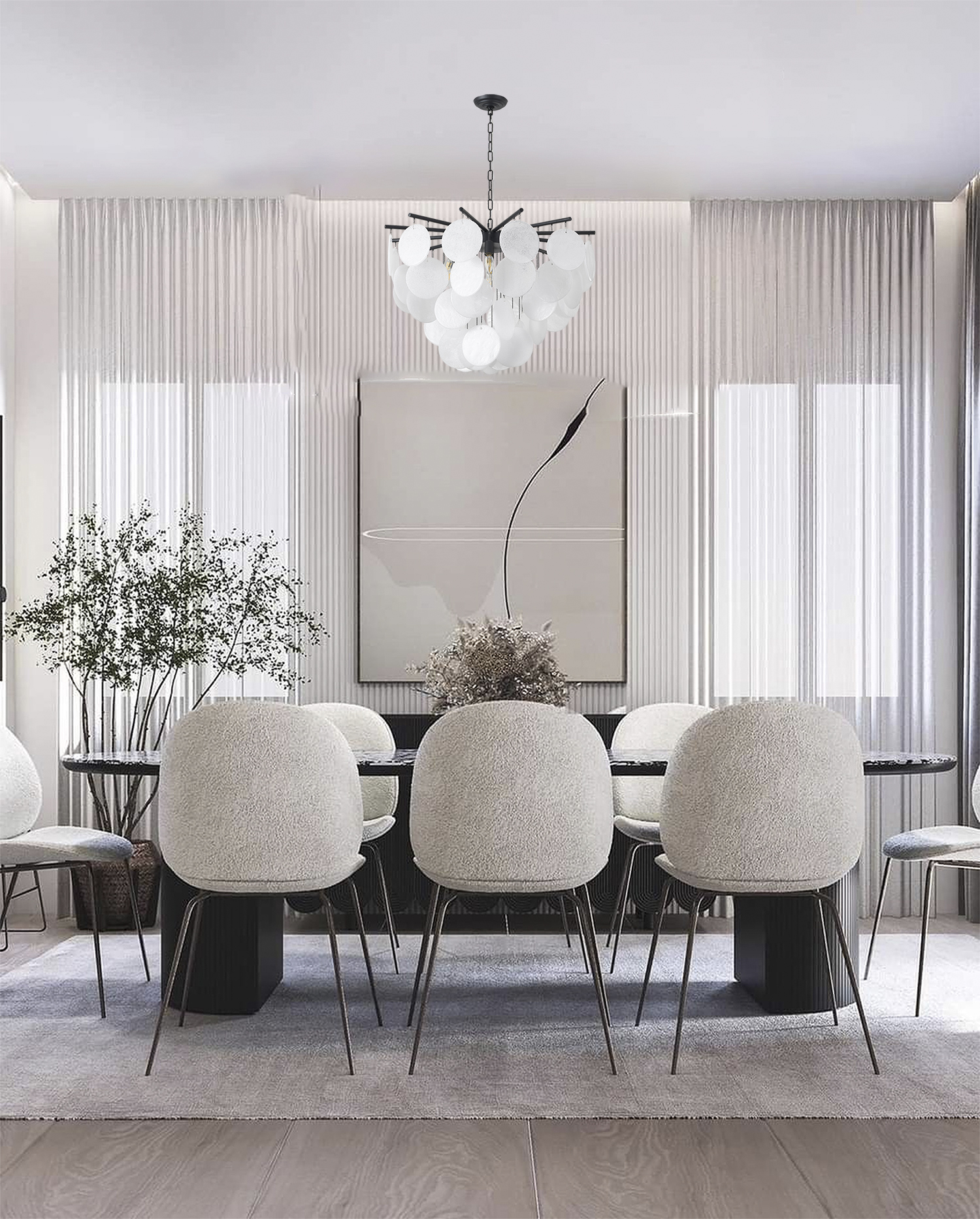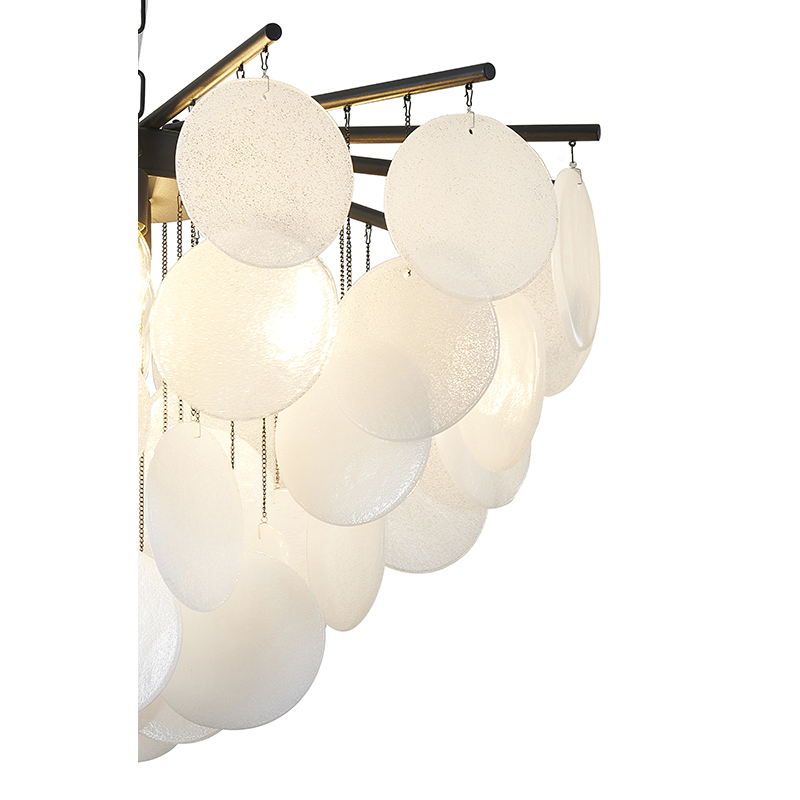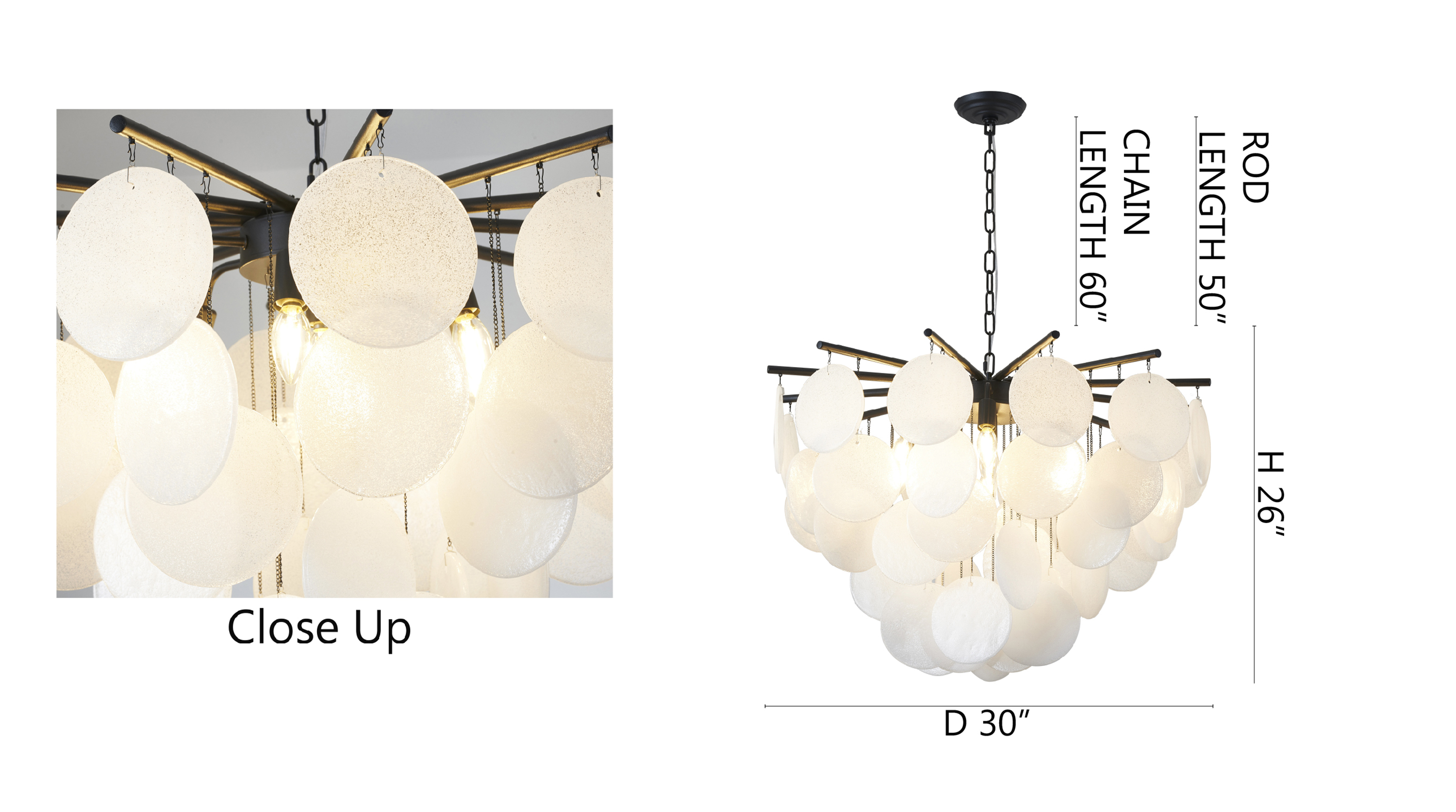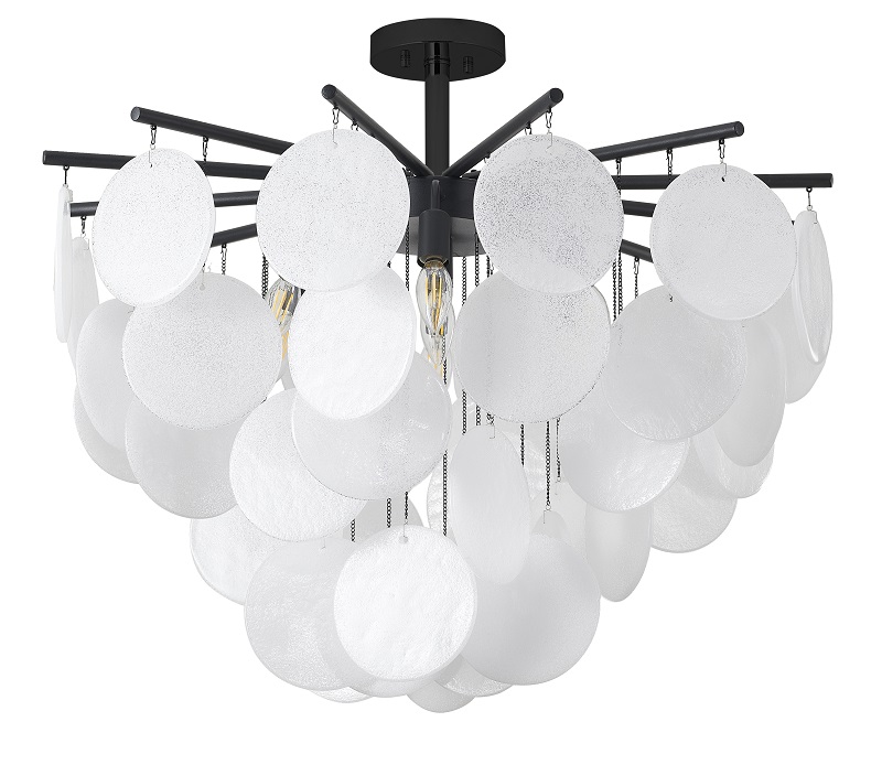 A SATIN BLACK FRAME WITH FROSTED WHITE HANGING GLASS PETALS