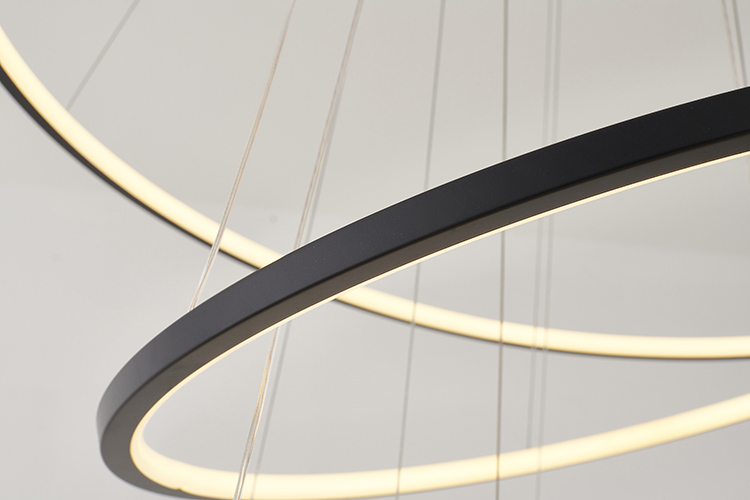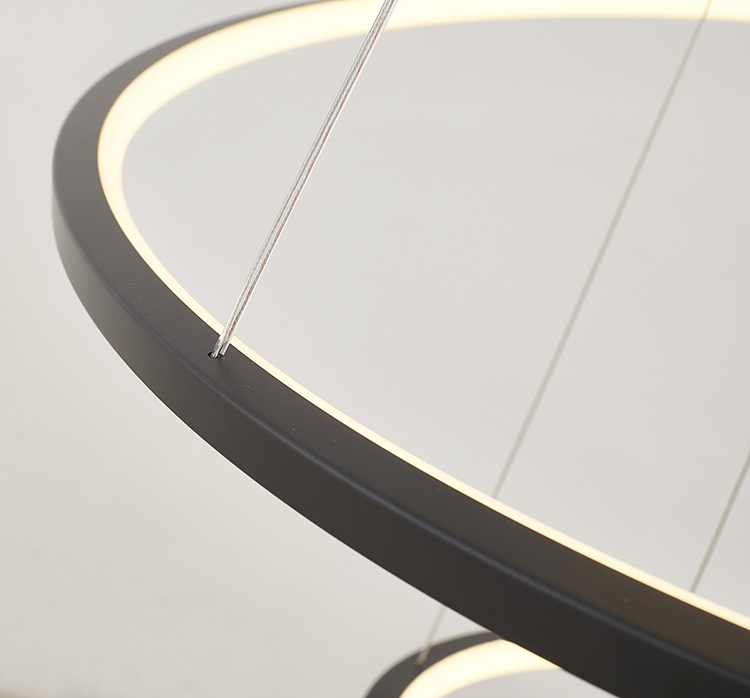 A SIX RING HALO CHANDELIER IN A MATTE BLACK FINISH