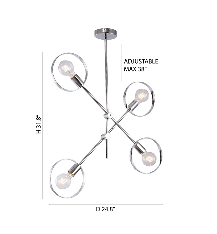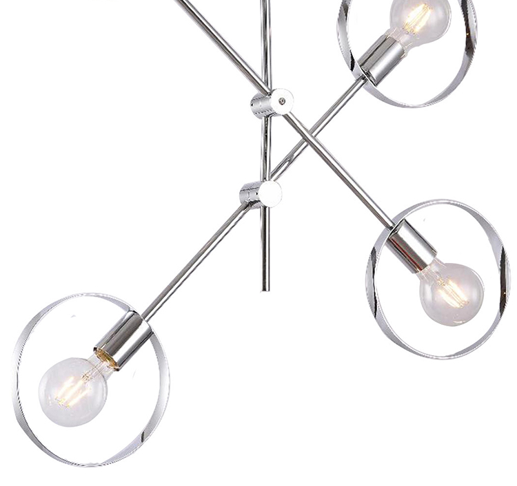 A CHROME PIPE ARM CEILING FIXTURE WITH ROUND MOVEABLE SOCKETS