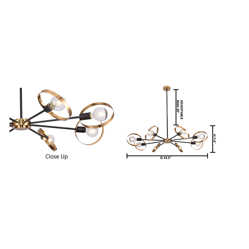 A BLACK & BRUSHED BRASS CEILING FIXTURE WITH ADJUSTABLE ARMS
