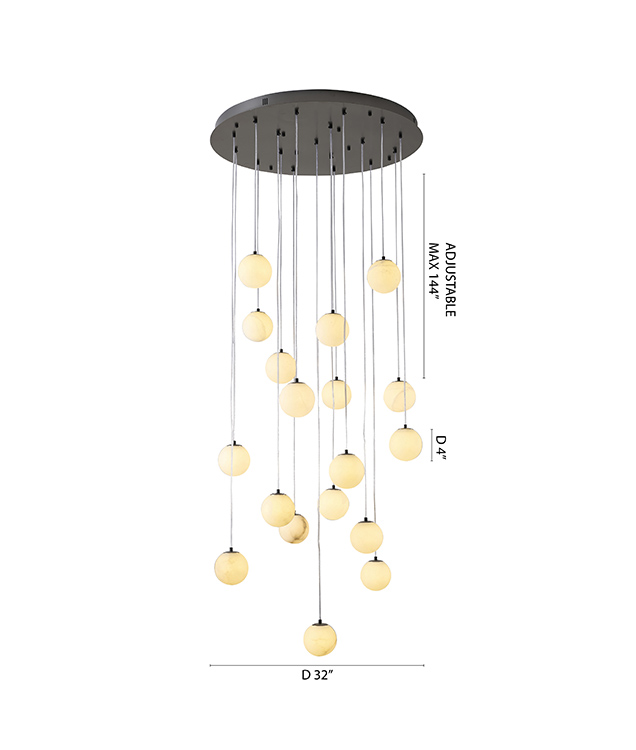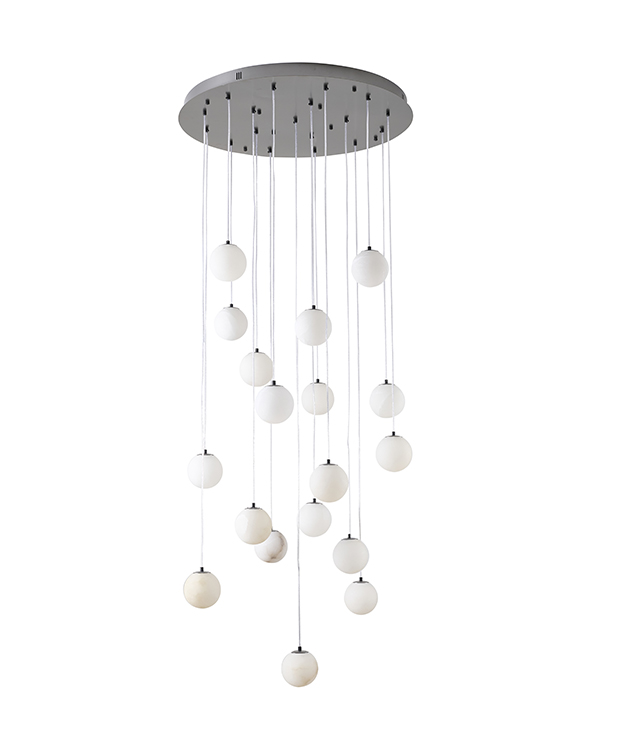 BLACK STAINLESS STEEL CHANDELIER WITH ALABASTER PENDANTS
