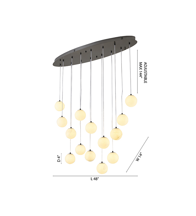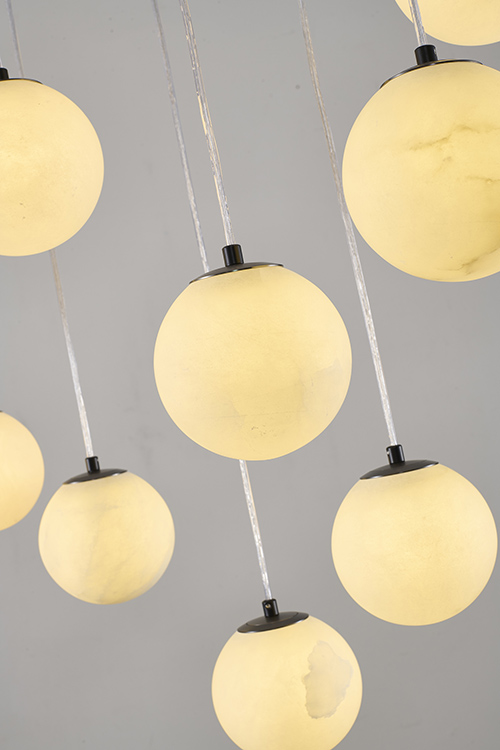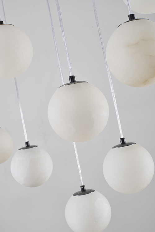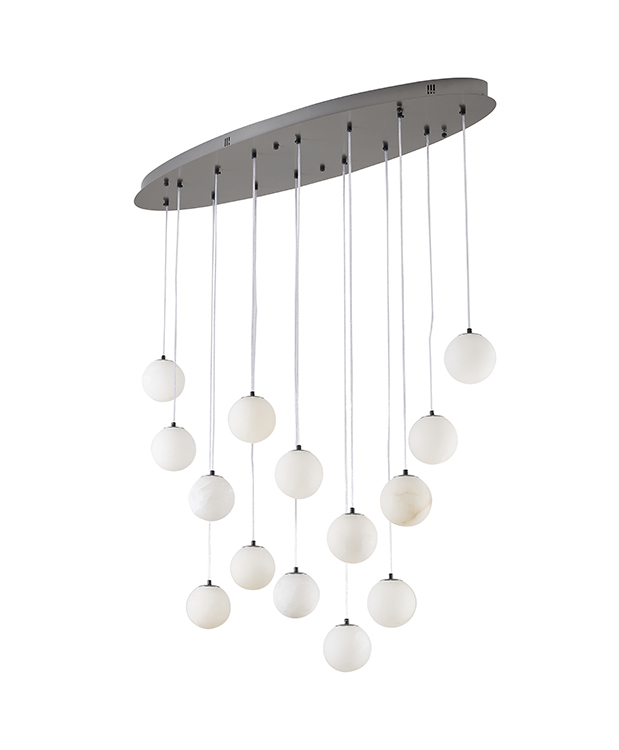 BLACK STAINLESS STEEL CHANDELIER WITH ALABASTER PENDANTS