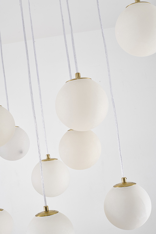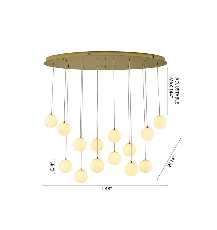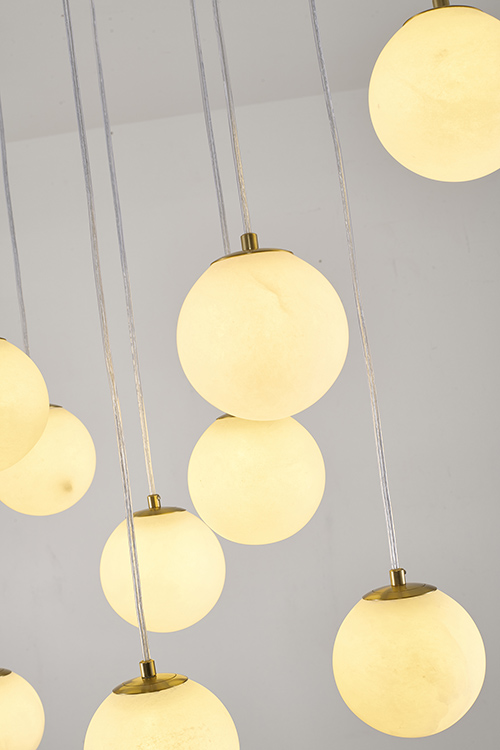 BRASS STAINLESS STEEL CHANDELIER WITH ALABASTER PENDANTS