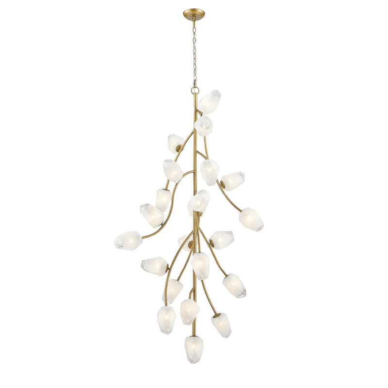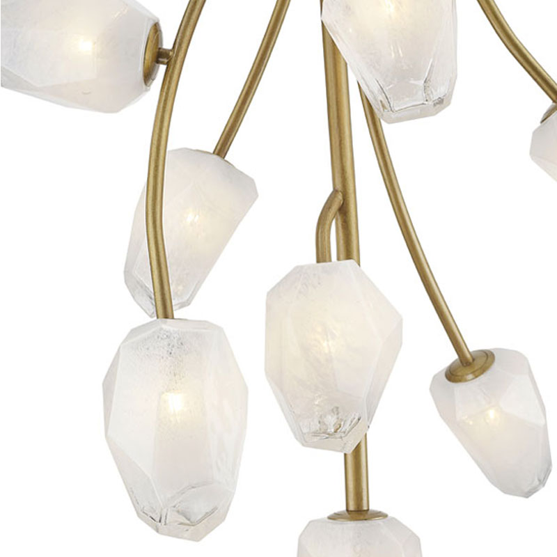 A GOLD BRANCH CHANDELIER WITH WHITE GLASS SHADES