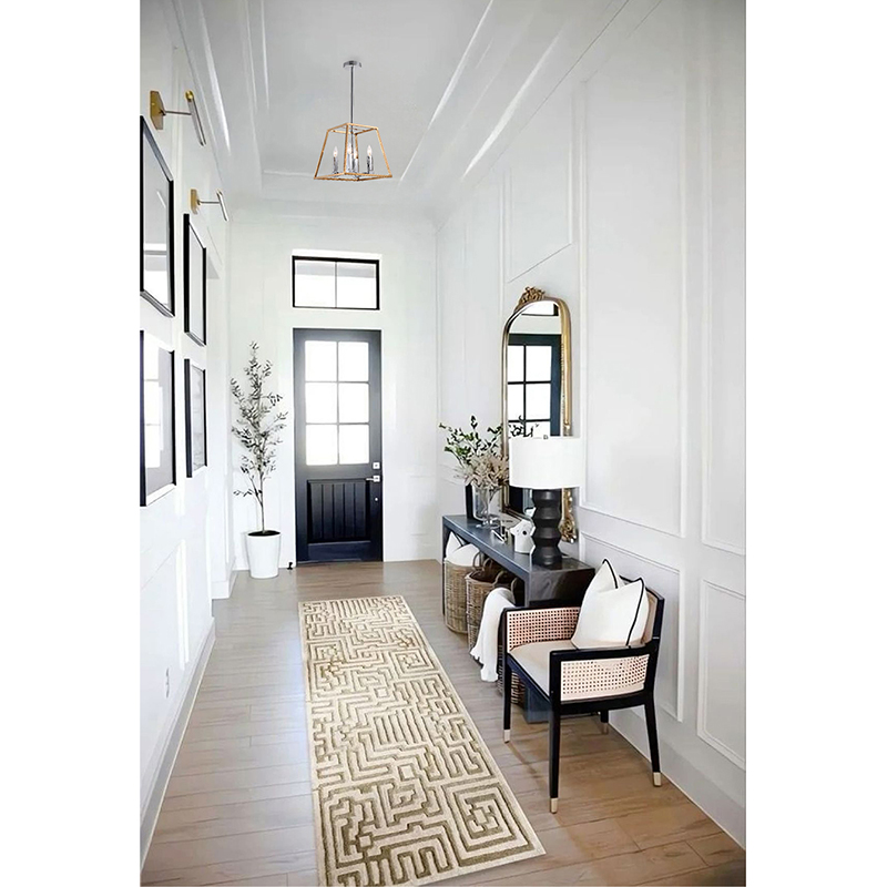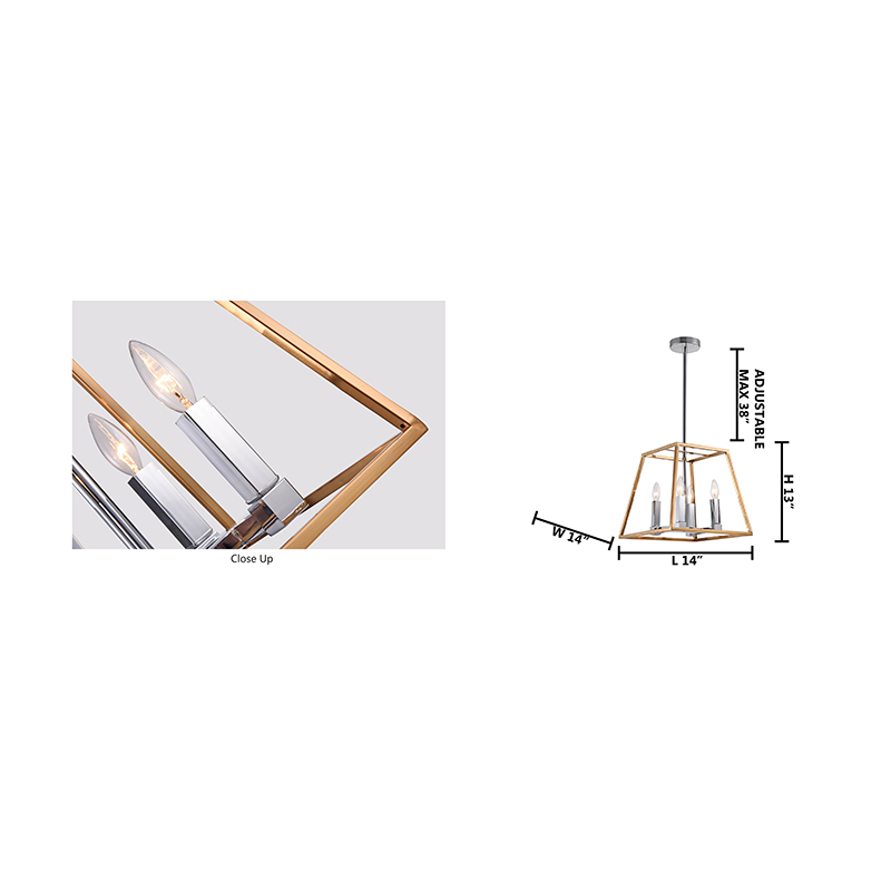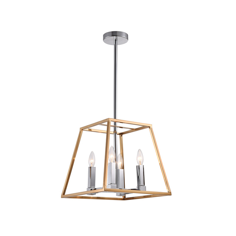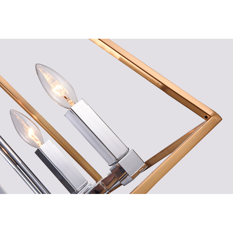 A GOLD AND CHROME CEILING FIXTURE WITH CANDLE LIGHT BULBS