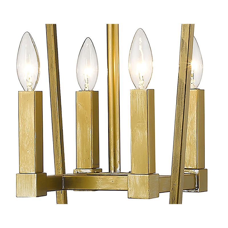 A GOLD METAL FOUR LIGHT CAGE CEILING FIXTURE