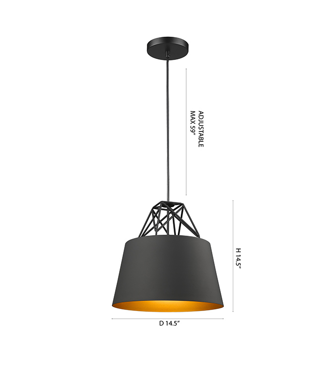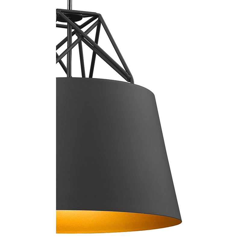 BLACK SHADE WITH GOLD INTERIOR AND METAL CLUSTER TOP SINGLE PENDANT LIGHT