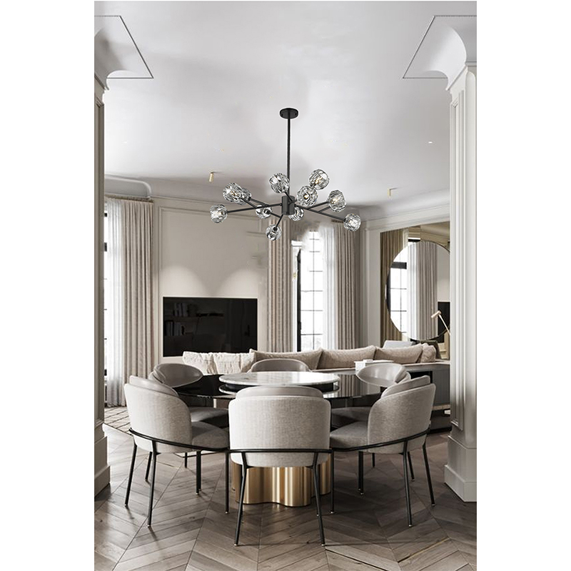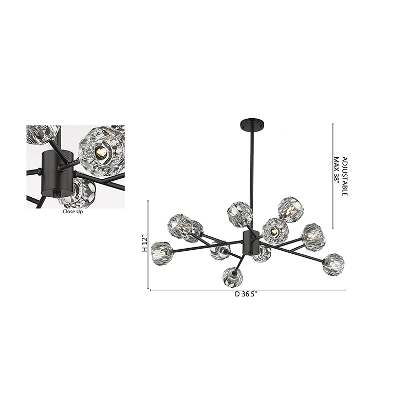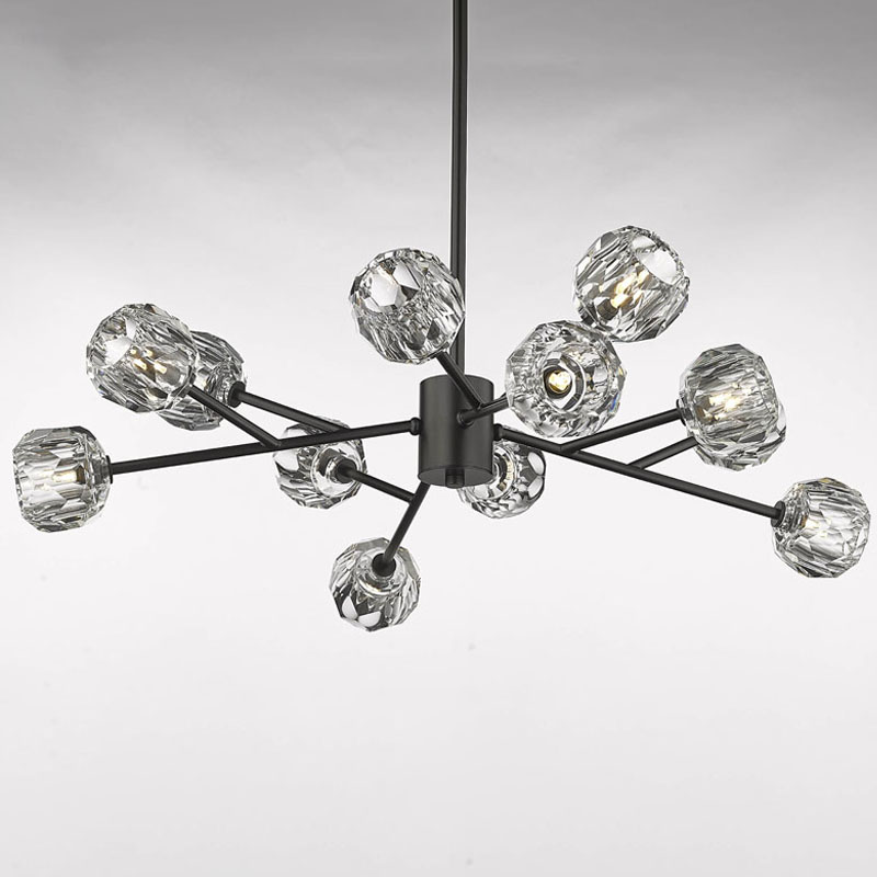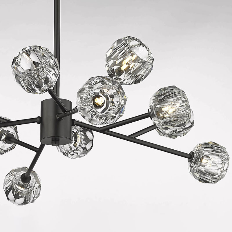 A BLACK FRAME BRANCH CHANDELIER WITH CLEAR CRYSTAL SHADES