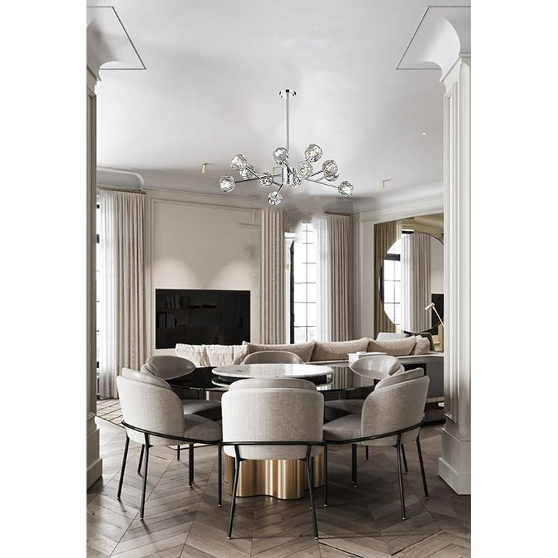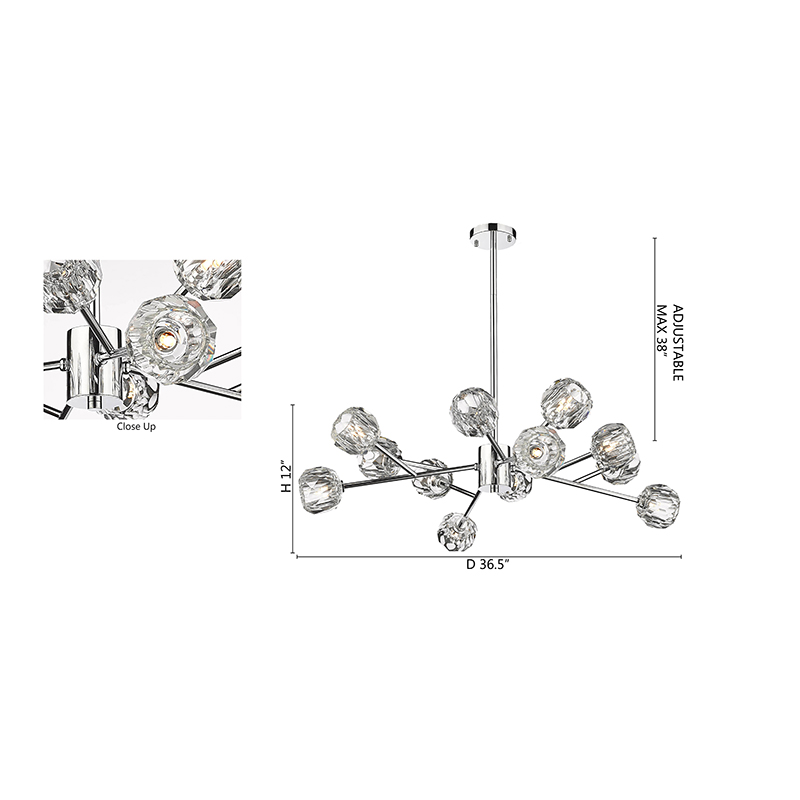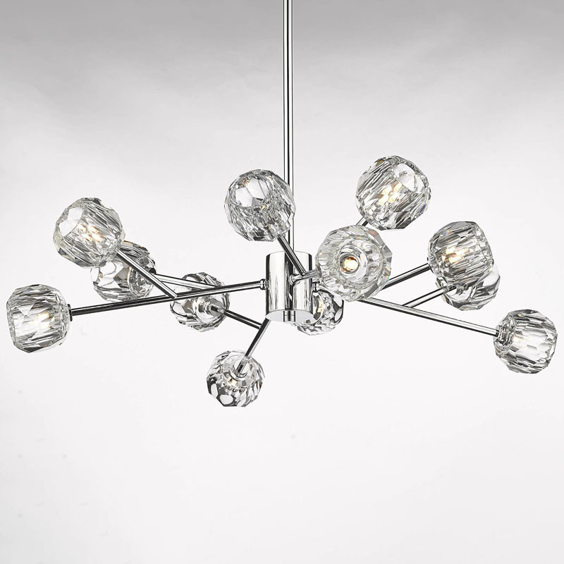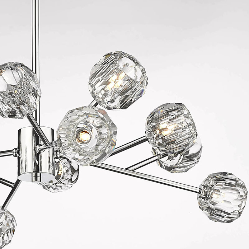 A CHROME FRAME BRANCH CHANDELIER WITH CLEAR CRYSTAL SHADES