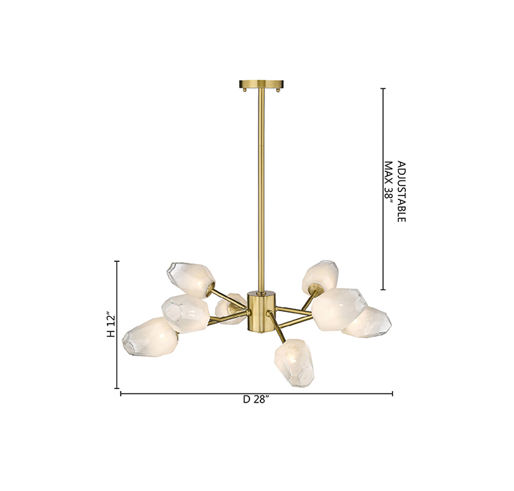 A GOLD BRANCH CHANDELIER WITH WHITE GLASS SHADES