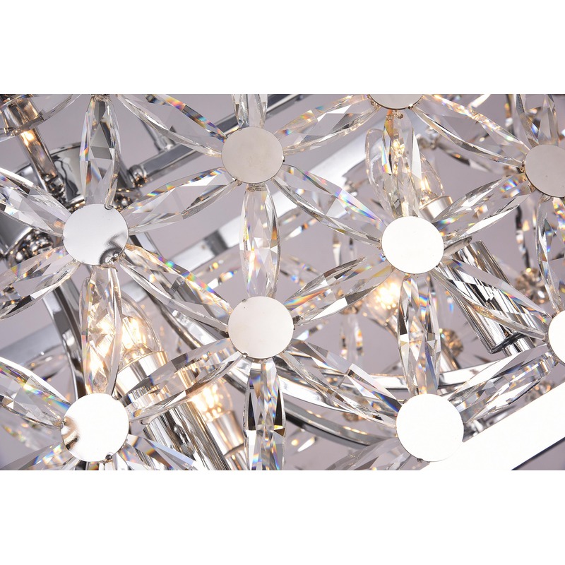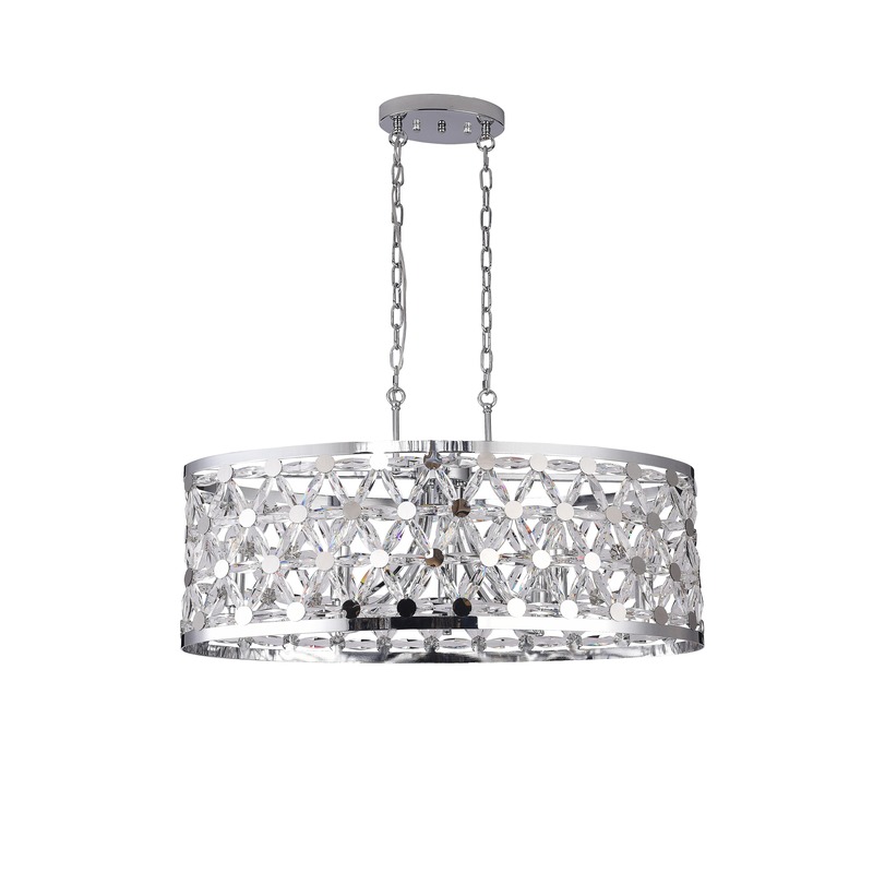 A CHROME OVAL FRAME CHANDELIER WITH CLEAR CRYSTAL STAR DETAILING
