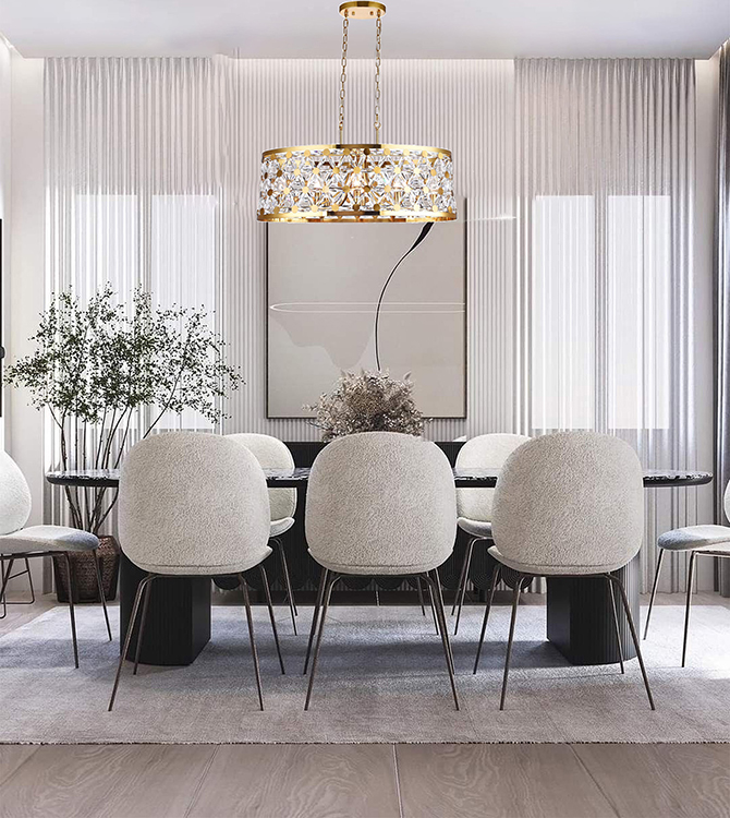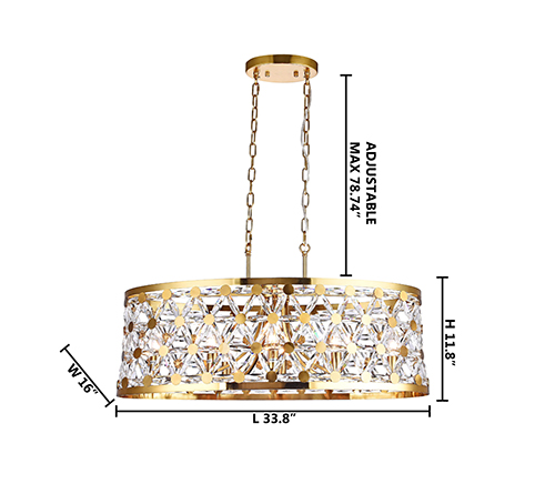 A COPPER OVAL FRAME CHANDELIER WITH CLEAR CRYSTAL STAR DETAILING