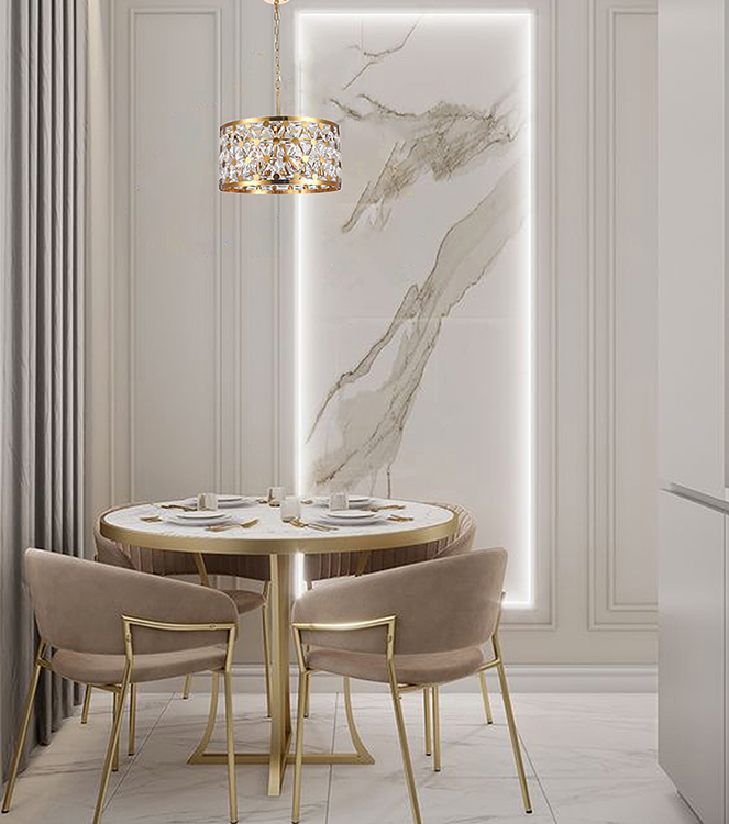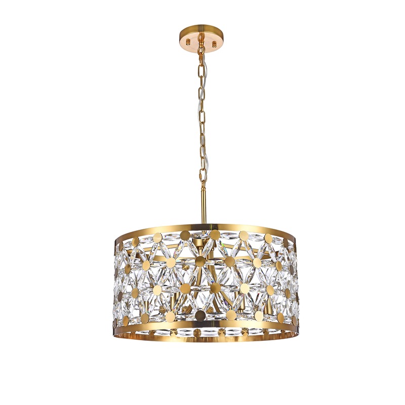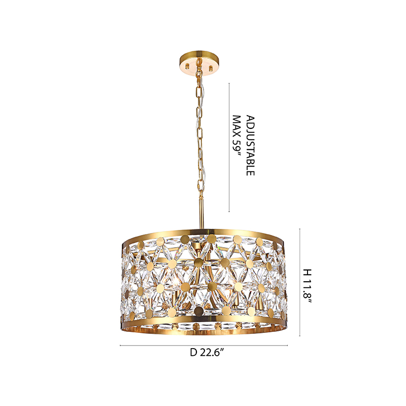 A COPPER DRUM SHADE CHANDELIER WITH CLEAR STAR CRYSTAL DETAILING