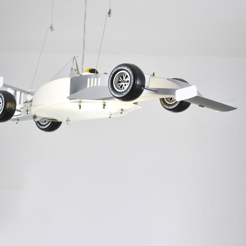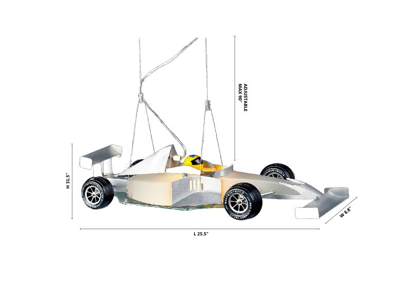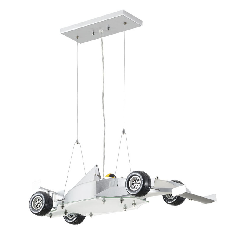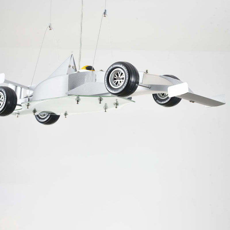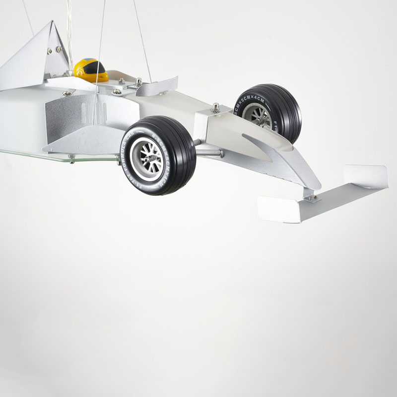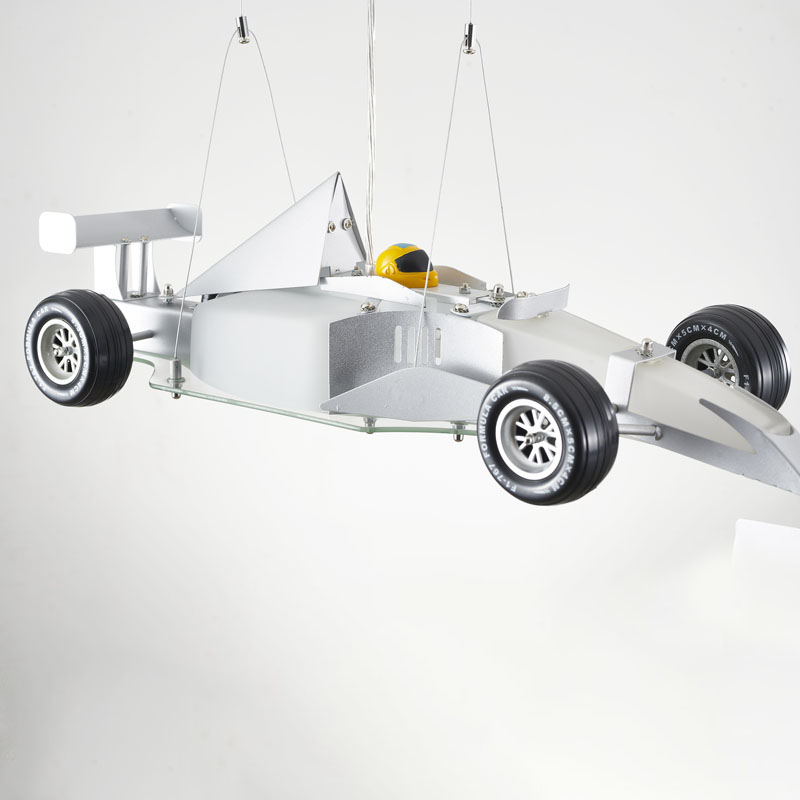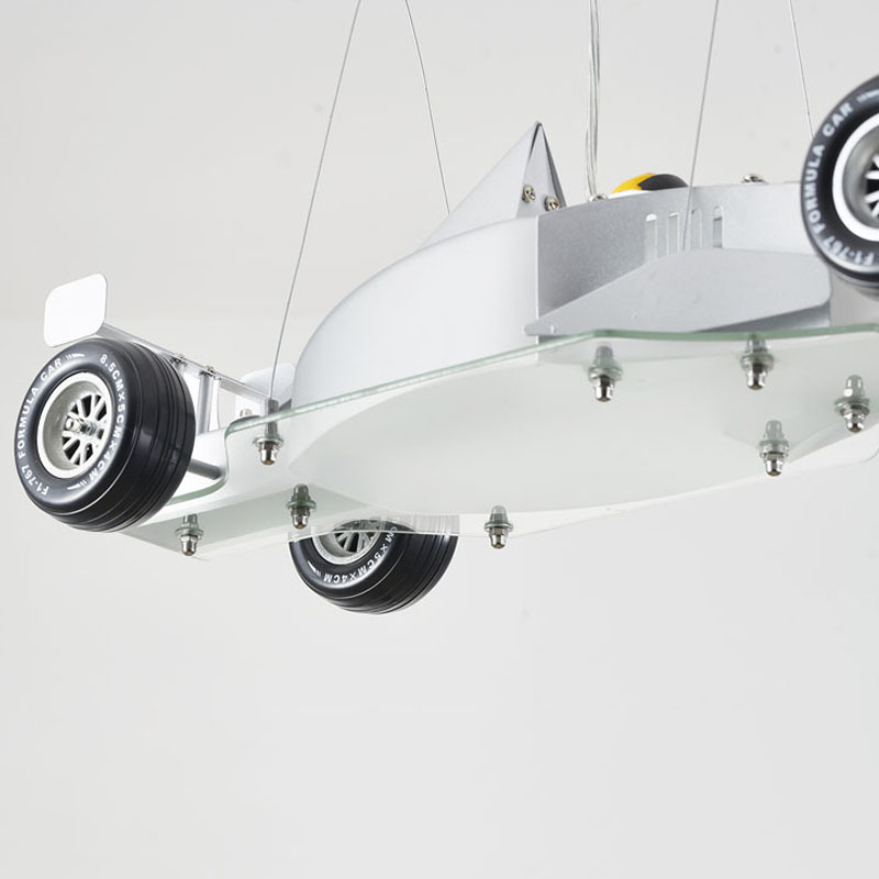 A SILVER RACE CAR DRIVER LIGHT FIXTURE WITH FROSTED GLASS
