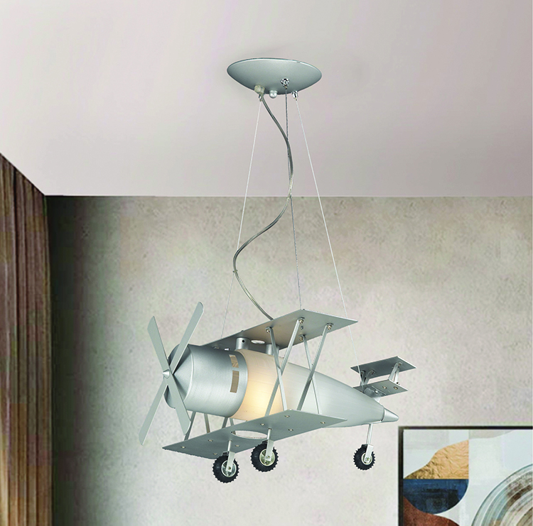 A SILVER AIRPLANE LIGHT FIXTURE WITH A FROSTED WHITE GLASS