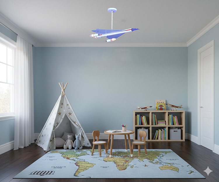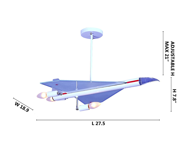 A ROCKET SHIP CHILDREN\\'S LIGHTING FIXTURE WITH A WHITE, RED, AND CHROME FINISH