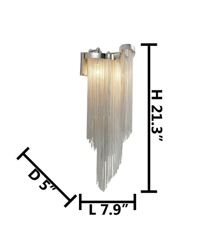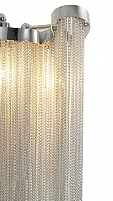 A CHROME FRAME WALL SCONCE WITH ALUMINIUM HANGING CHAINS