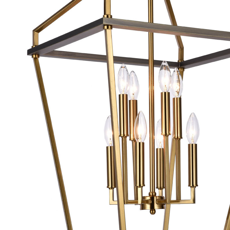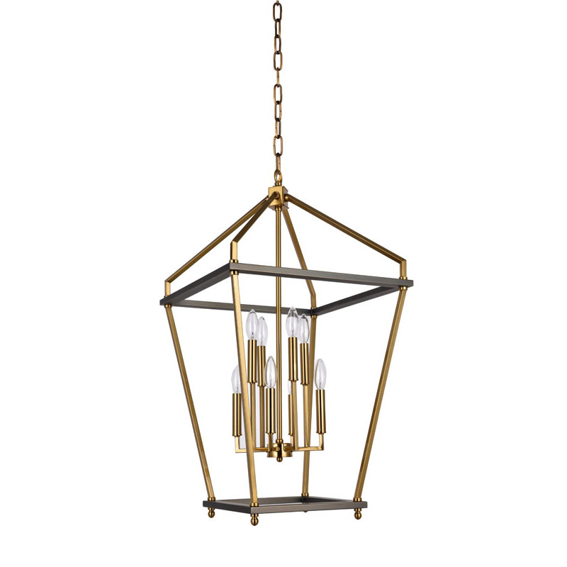A TWO TIER ANTIQUE BRASS AND GREY METAL FRAME LANTERN CEILING FIXTURE