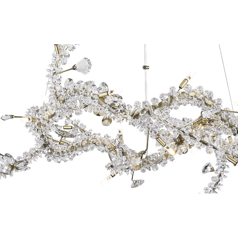 A ROUND BRONZE METAL FRAME BRANCH CHANDELIER WITH CLEAR AND CHAMPAGNE CRYSTAL