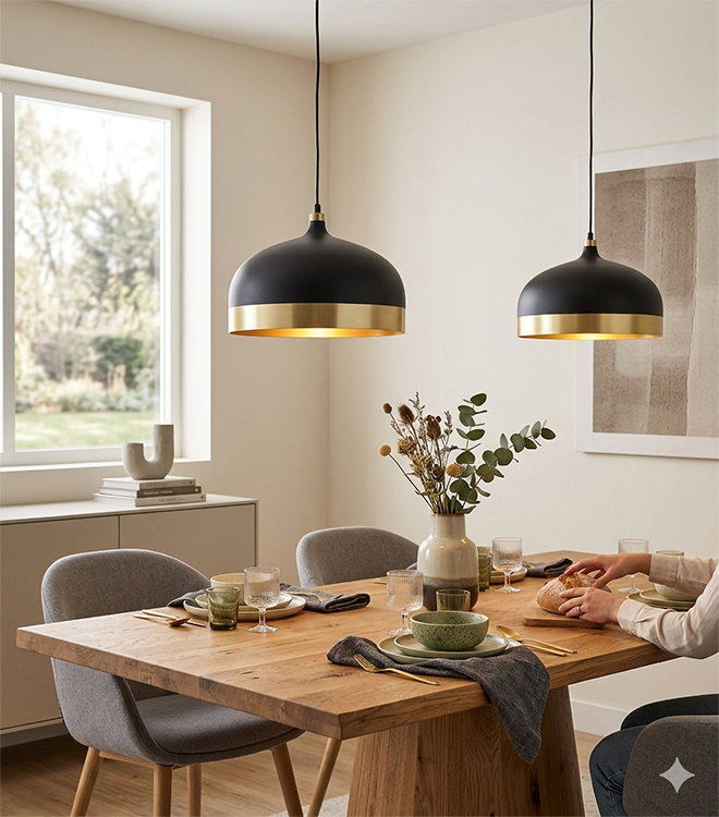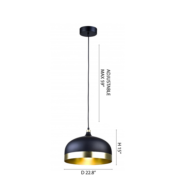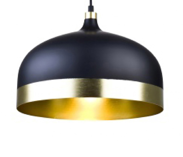 A BLACK WITH GOLD ALUMINIUM TRIM SHADE SINGLE PENDANT LIGHT
