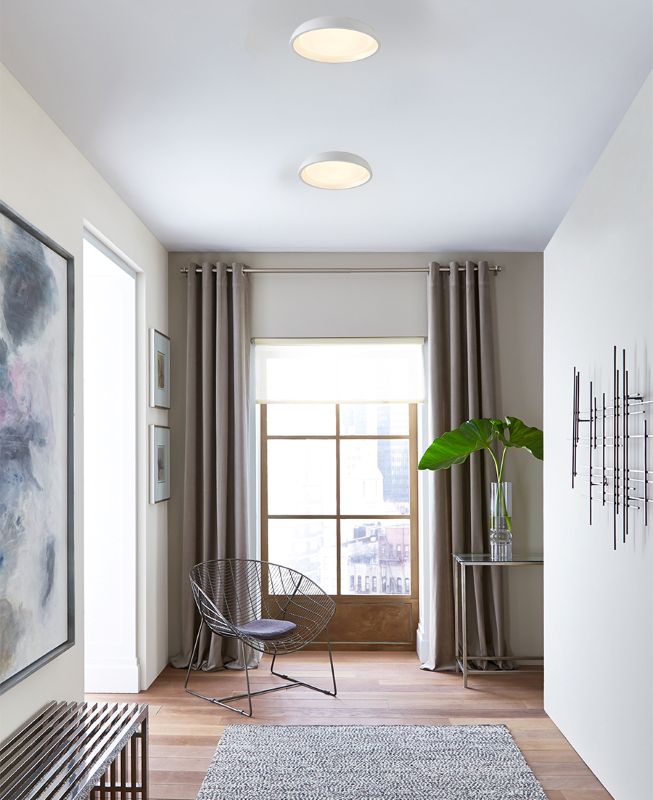 A WHITE METAL FLUSH MOUNT WITH AN ACRYLIC DIFFUSER