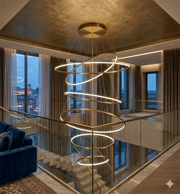 A GOLD HAIR LINE SIX HALO RING CHANDELIER