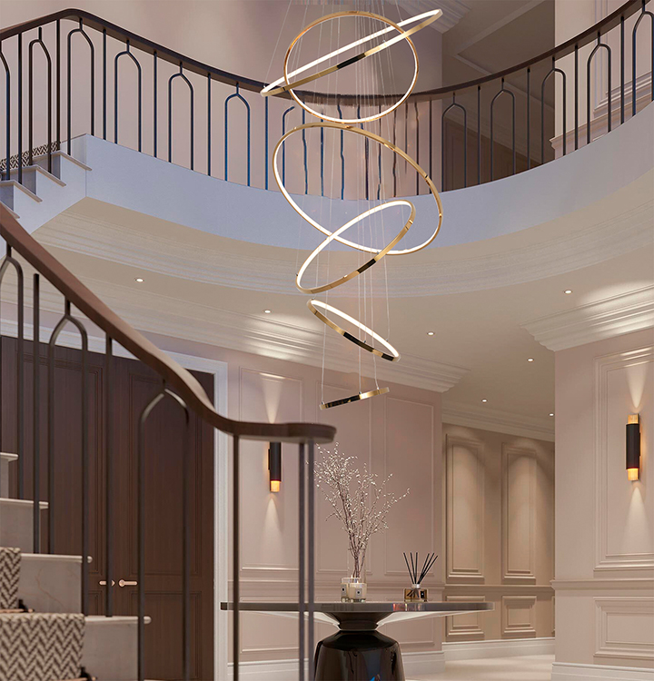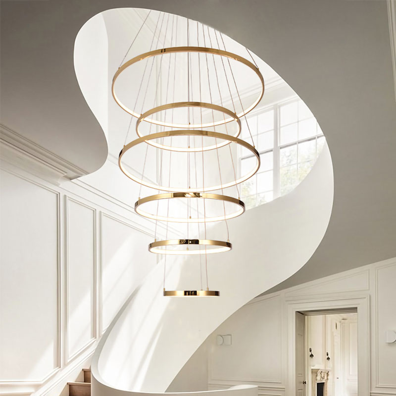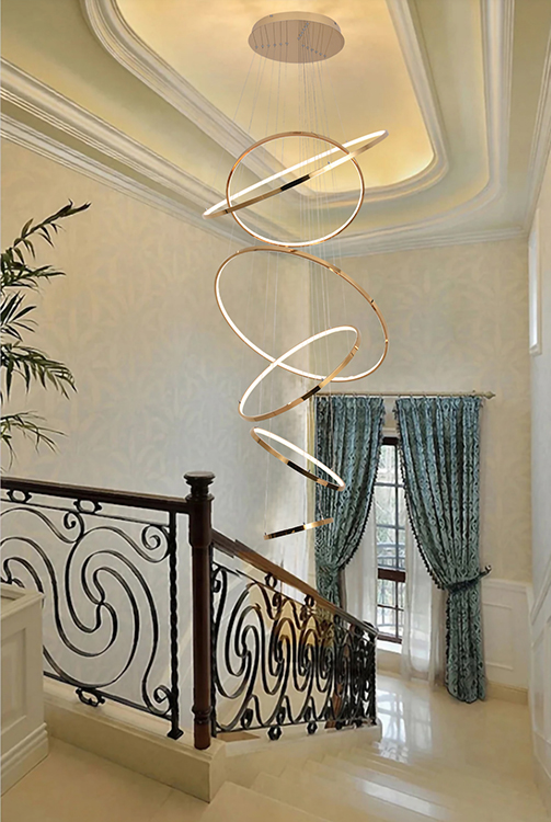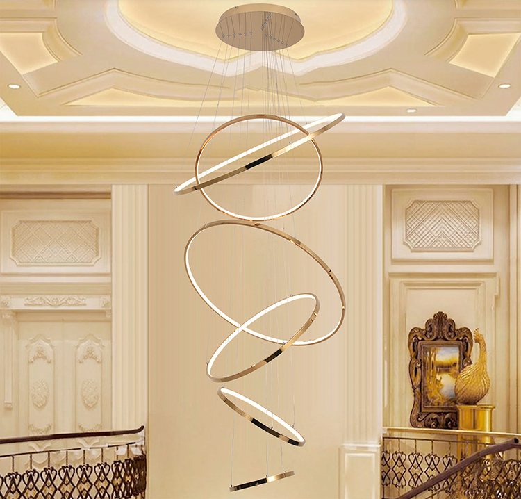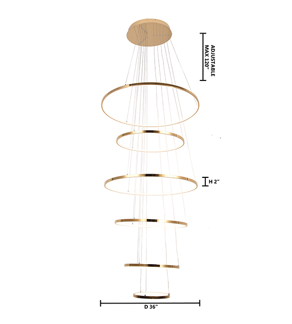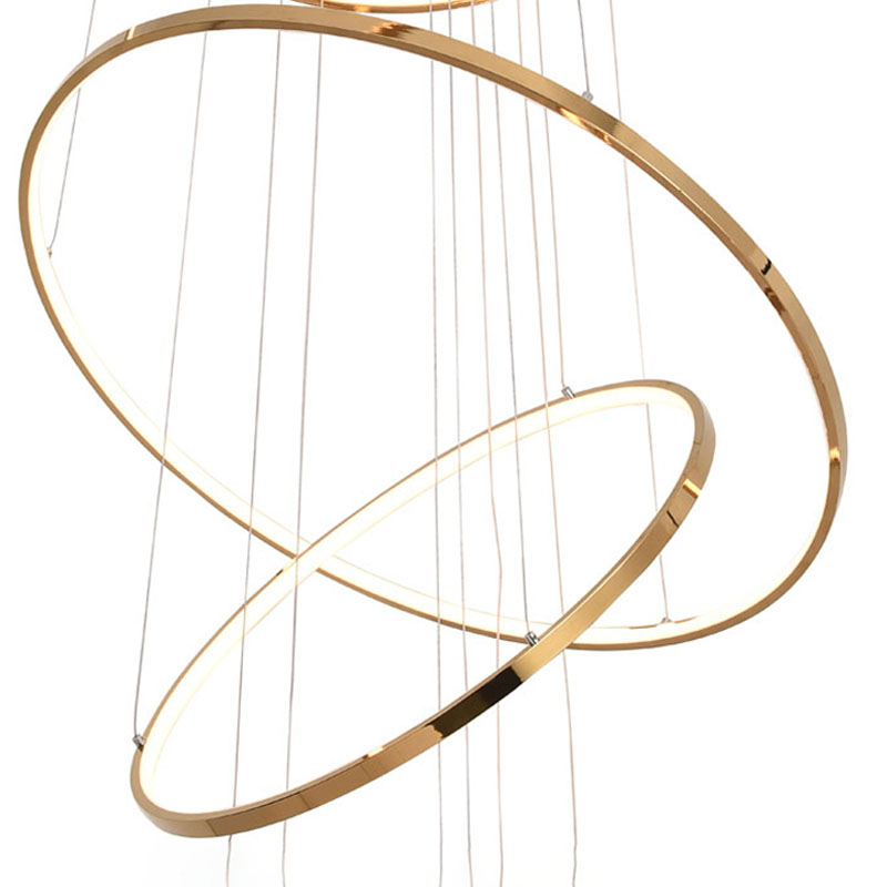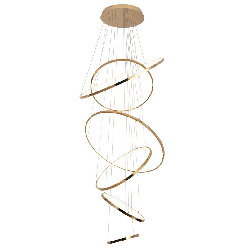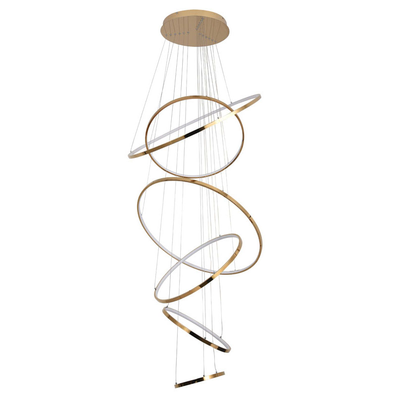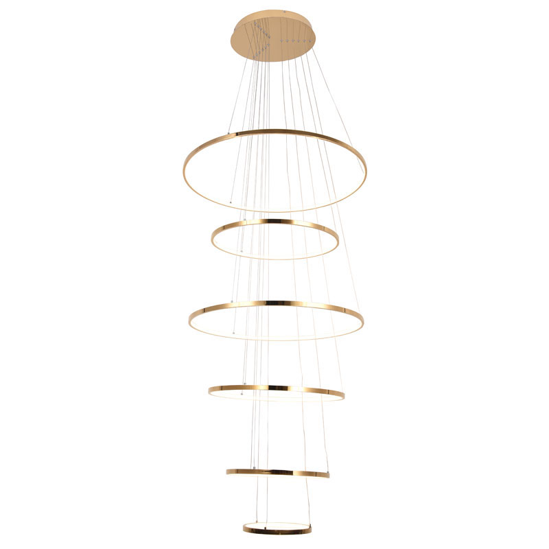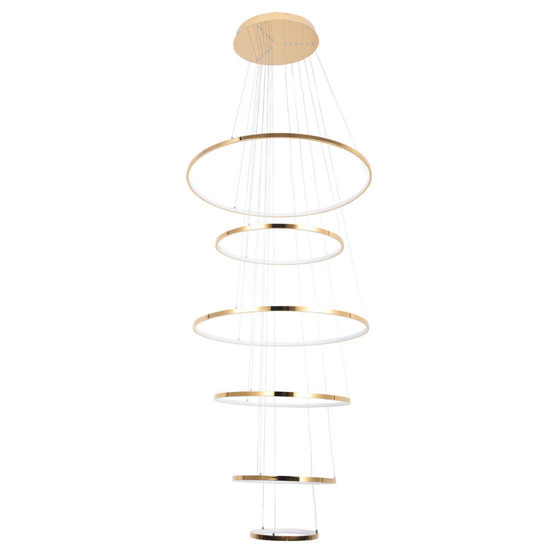 A SIX HALO RING LED CHANDELIER IN A GOLD POLISHED FINISH