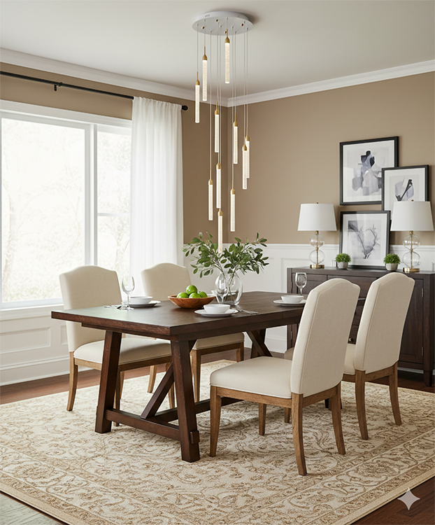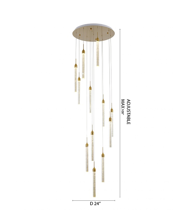 A GOLD FLUSHED FRAME CHANDELIER WITH CHAMPAGNE CRYSTAL PENDANTS