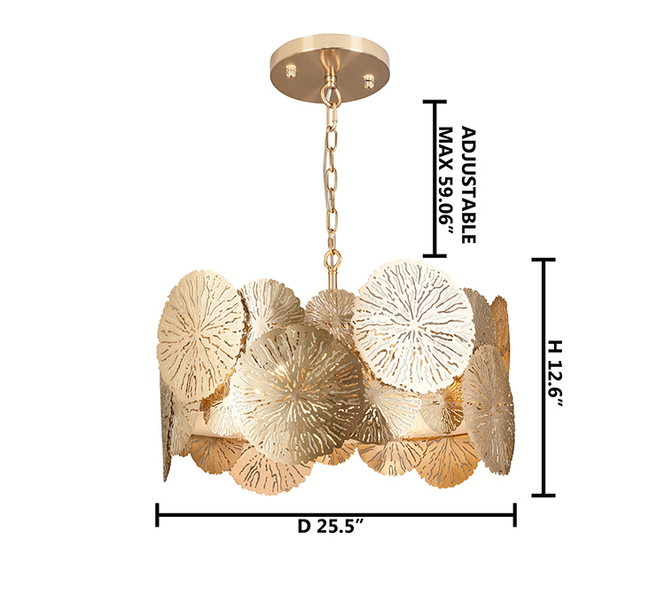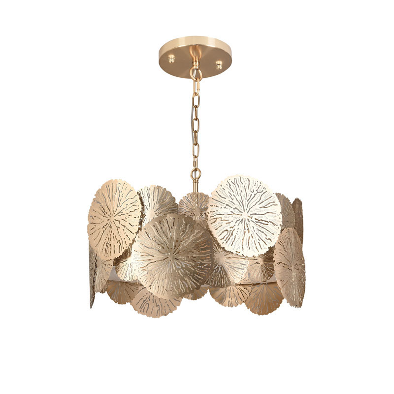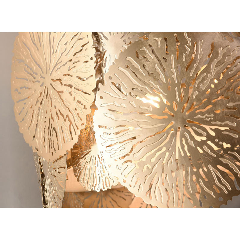 A ROUND COPPER PETAL LEAF CEILING FIXTURE WITH A BOTTOM ACRYLIC COVER