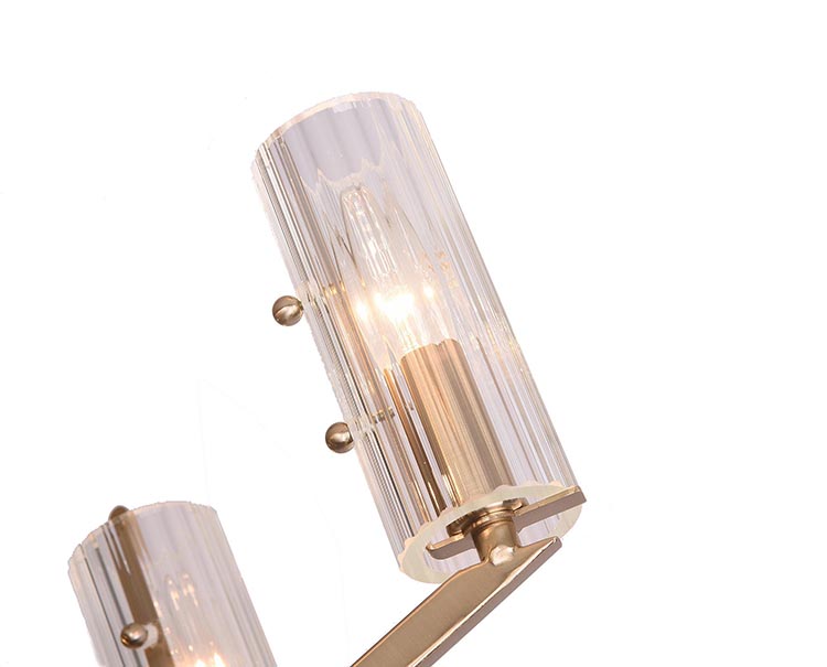 A COPPER FRAME CEILING FIXTURE WITH CLEAR GLASS CYLINDER SHADES