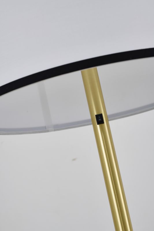 BLACK AND SATIN BRASS METAL FLOOR LAMP WITH A WHITE LINEN SHADE
