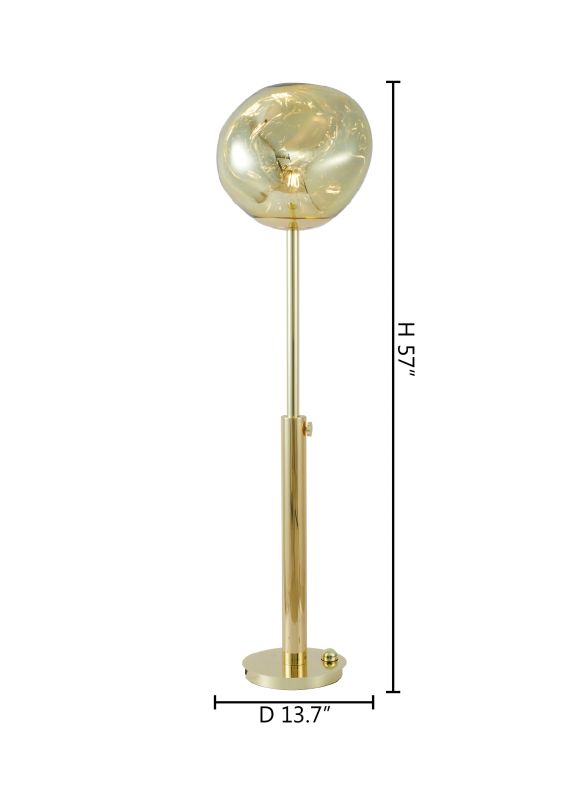 A GOLD ORB ACRYLIC SHADE FLOOR LAMP WITH GOLD HARDWARE