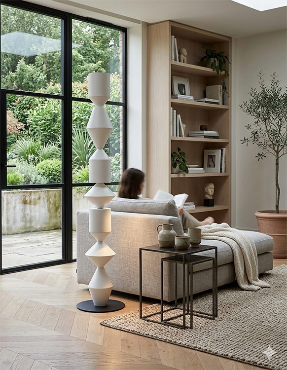 WHITE IRON FLOOR LAMP WITH A WHITE ACRYLIC SHADE